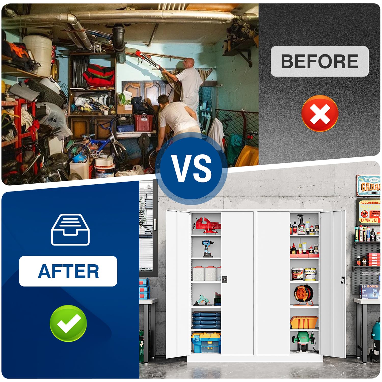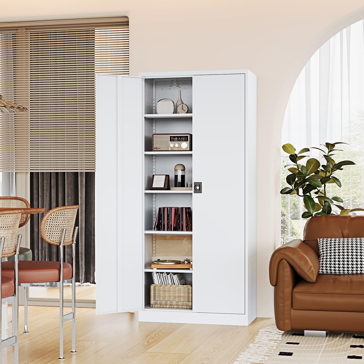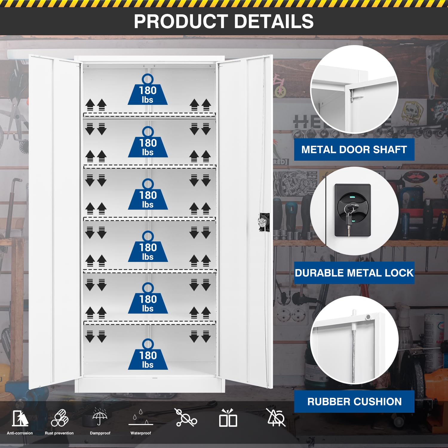 Fesbos Metal Storage Cabinet-72” Tall Steel File Cabinets with Lockable Doors and Adjustable Shelves-White Steel Storage Cabinet for Kitchen, Office, Garage