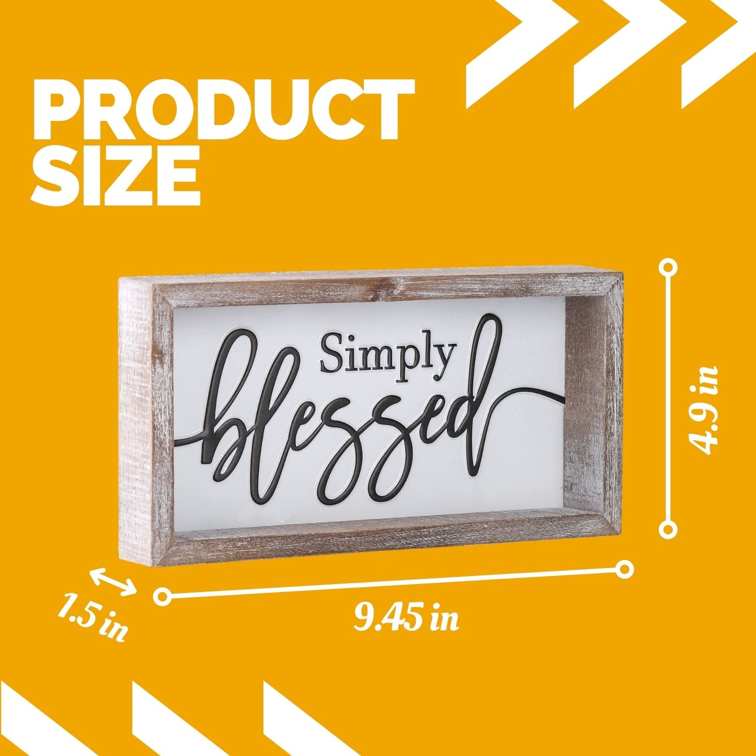 FESTWIND Tiered Tray Decor, Simply Blessed Sign Embossed Metal With Wood Frame - Shelf, Mantel, Blessed Signs for Home Decor - Rustic Thanksgiving, Primitive Decoration