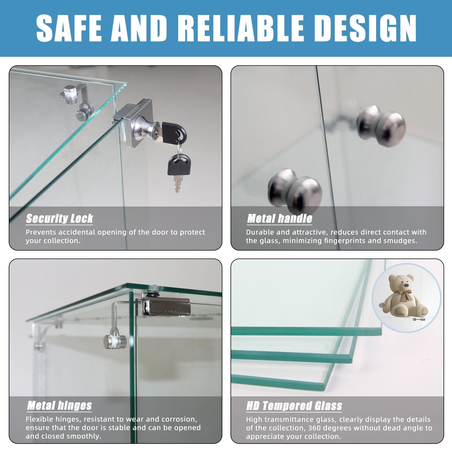 - SAFE AND RELIABLE: This is a safe and beautiful display cabinet to display your precious collections. 4mm tempered glass, strong impact resistance, not easy to break. With locks and anti-dumping devices, it is stable and reliable to ensure the safety of your collections, even if there are children or pets at home.