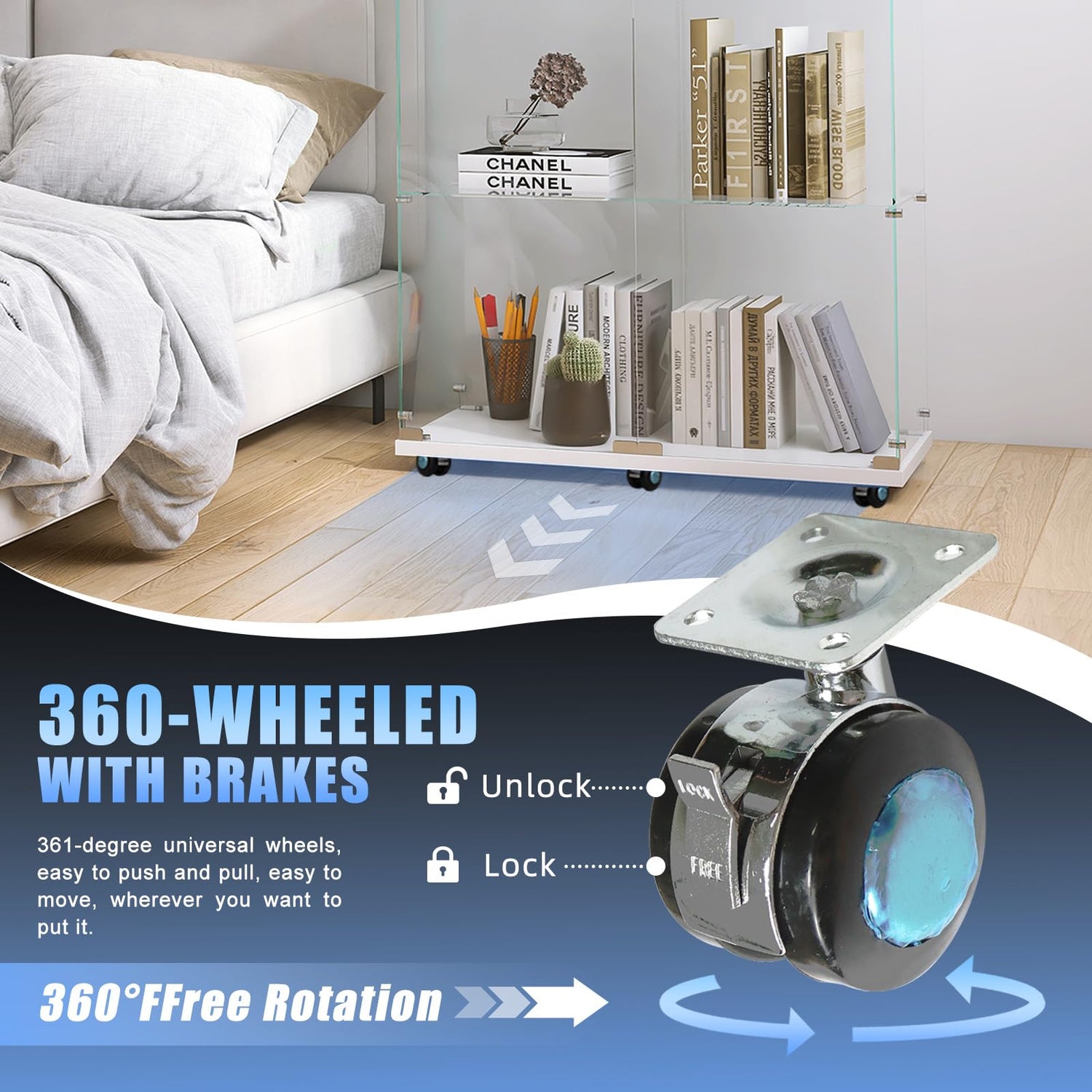 - FLEXIBLE MOBILE DESIGN: Our movable glass display cabinet has 4pcs 360-degree universal wheels, which are easy to move and position. Each wheel is equipped with a brake device to ensure that the collection cabinet remains stable during use, without worrying about sliding, protecting your precious collection.