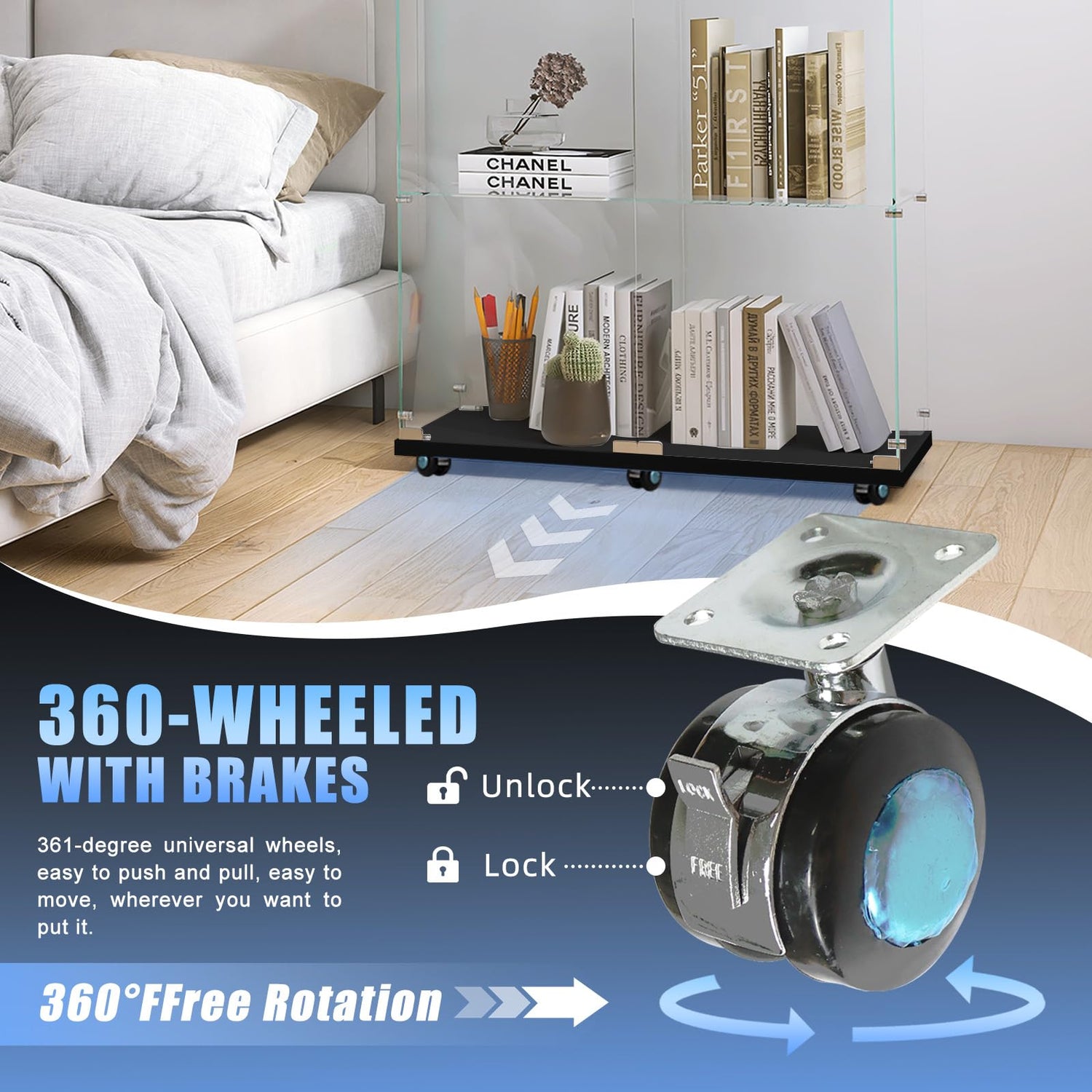 - FLEXIBLE MOBILE DESIGN: Our movable glass display cabinet has 4pcs 360-degree universal wheels, which are easy to move and position. Each wheel is equipped with a brake device to ensure that the collection cabinet remains stable during use, without worrying about sliding, protecting your precious collection.