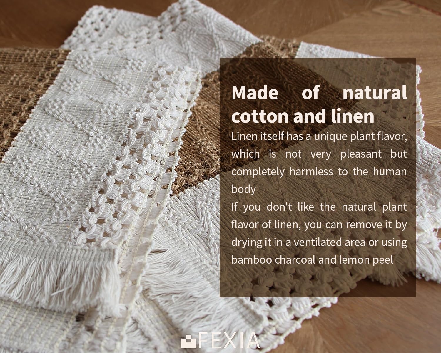 FEXIA Boho Placemats Set of 4, Macrame Table Decor Farmhouse Style Placemats in Natural Cotton Burlap, for Kitchen and Dining Table Centerpiece Home Decorations