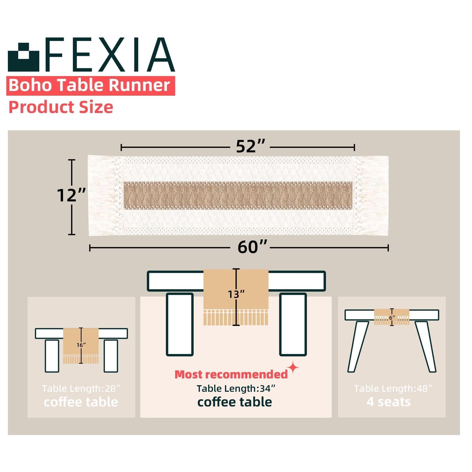 FEXIA Boho Table Runner with Tassels 60 Inches Long Thanksgiving Farmhouse Rustic Cream & Brown Macrame Table Runner for Home Dining Bedroom Bridal Shower Decor(12x60 Inches)