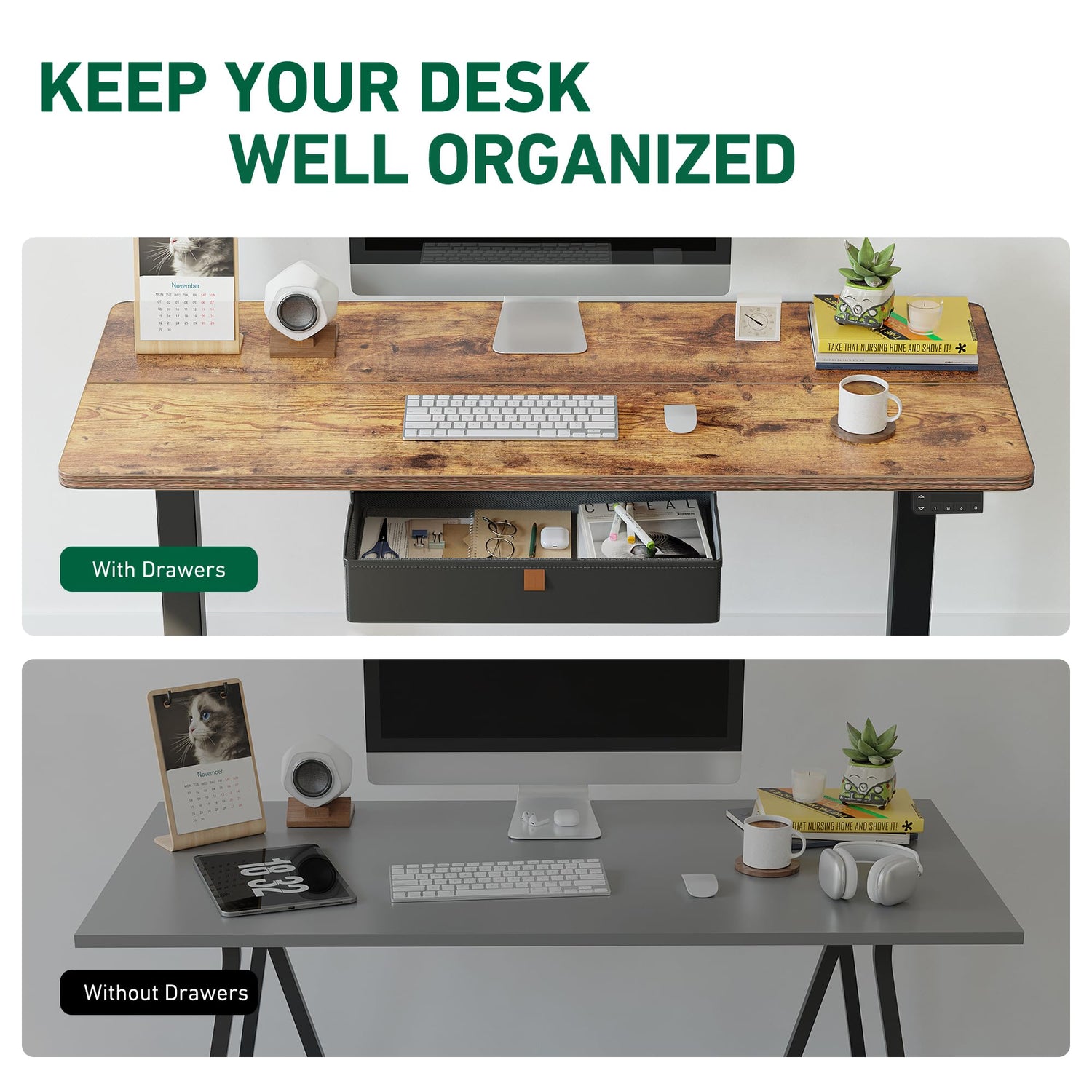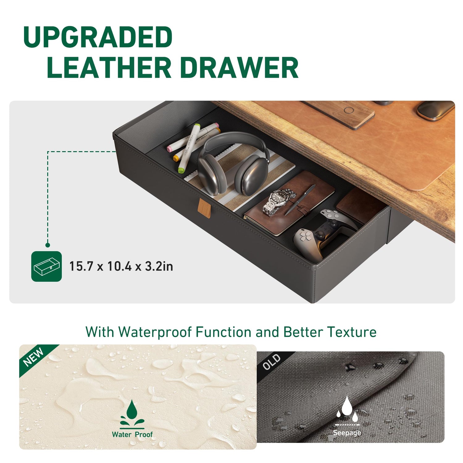 - Storage Drawer: 15.7 inches wide and 3.15 inches high storage space for daily work and life. The upgraded leather drawer with waterproof function and better texture, keep your desk clean and comfortable.