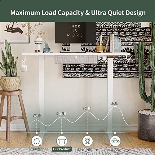 FEZIBO 48 x 24 Inches Standing Desk with Drawer, Adjustable Height Electric Stand up Desk with Storage, Sit Stand Home Office Desk, Ergonomic Computer Desk, White
