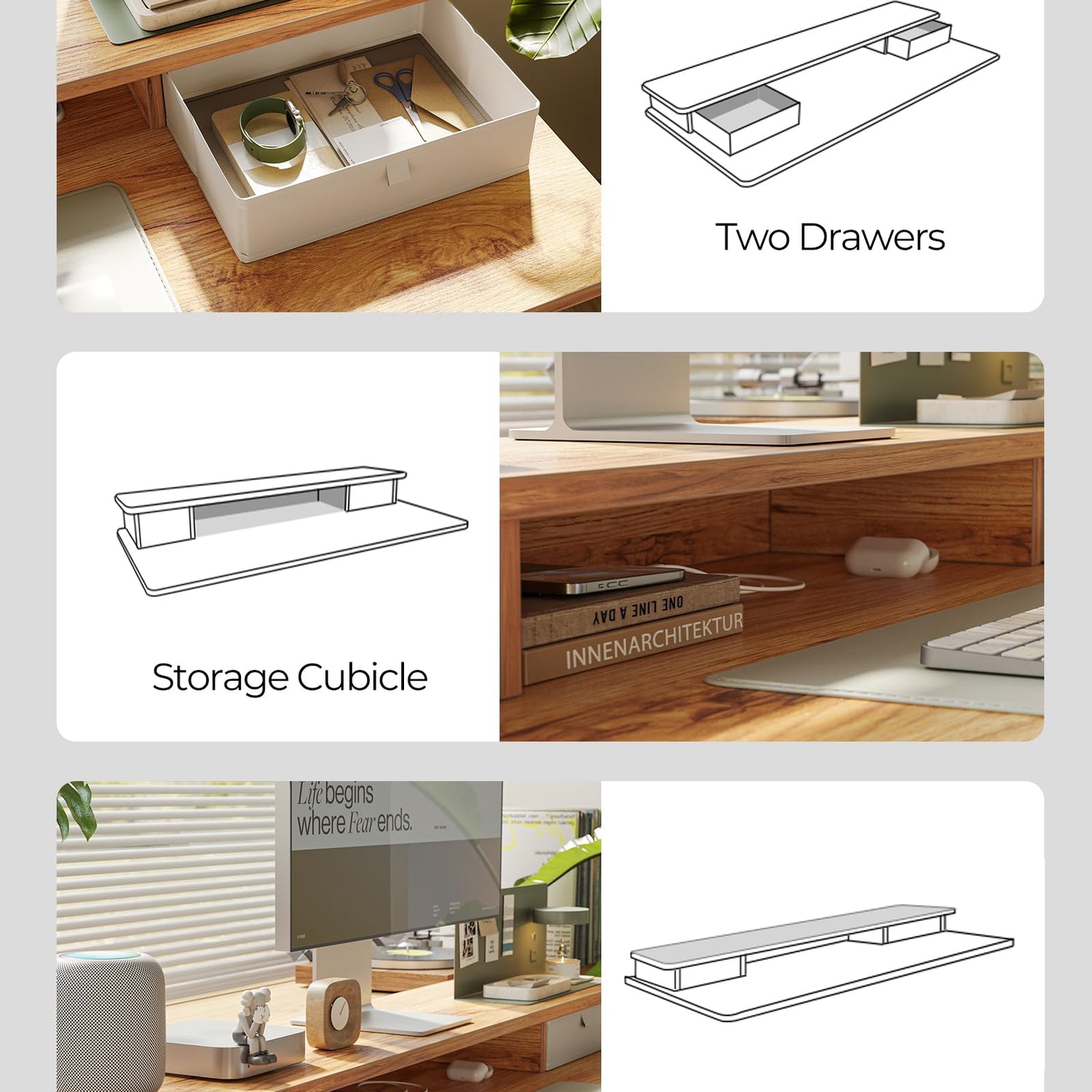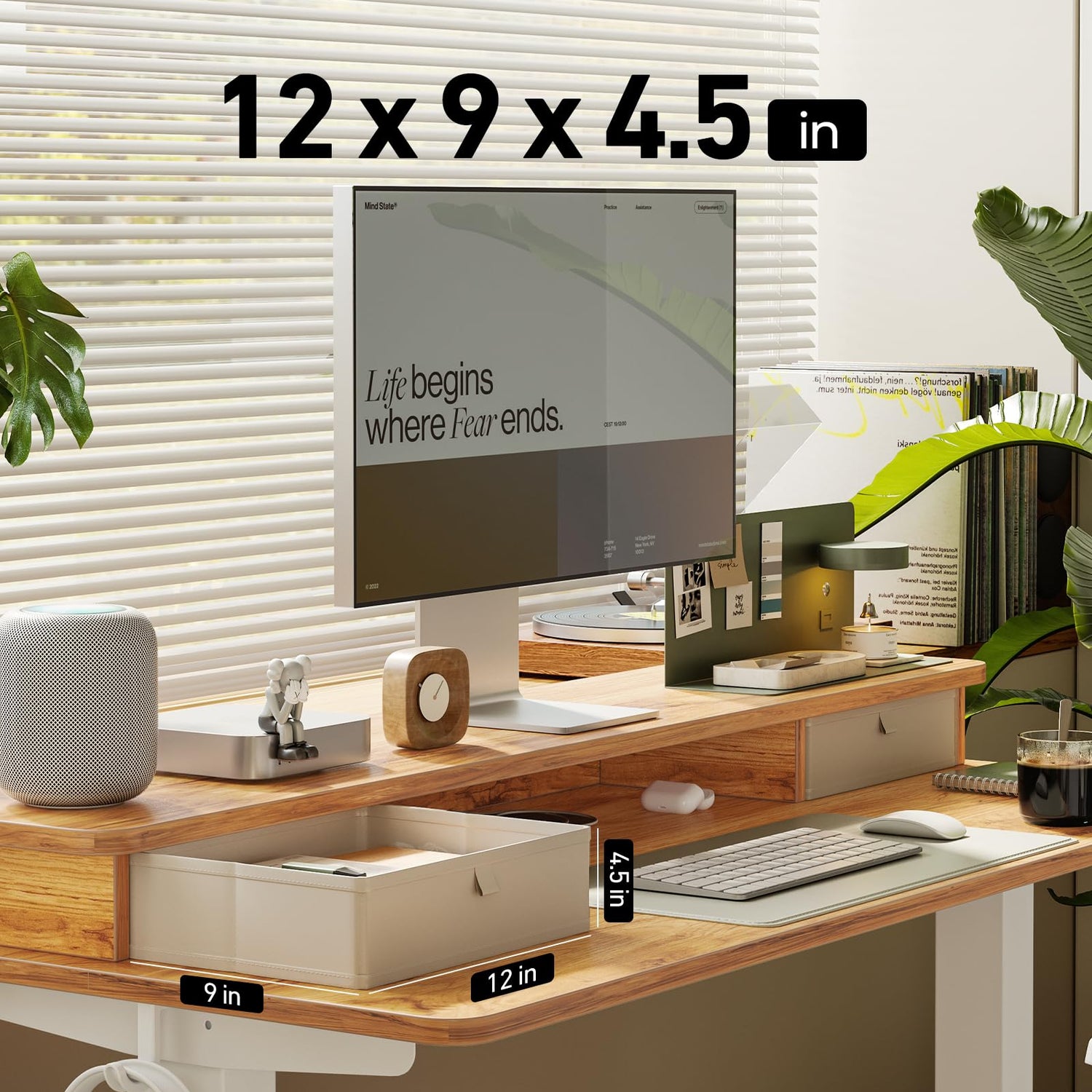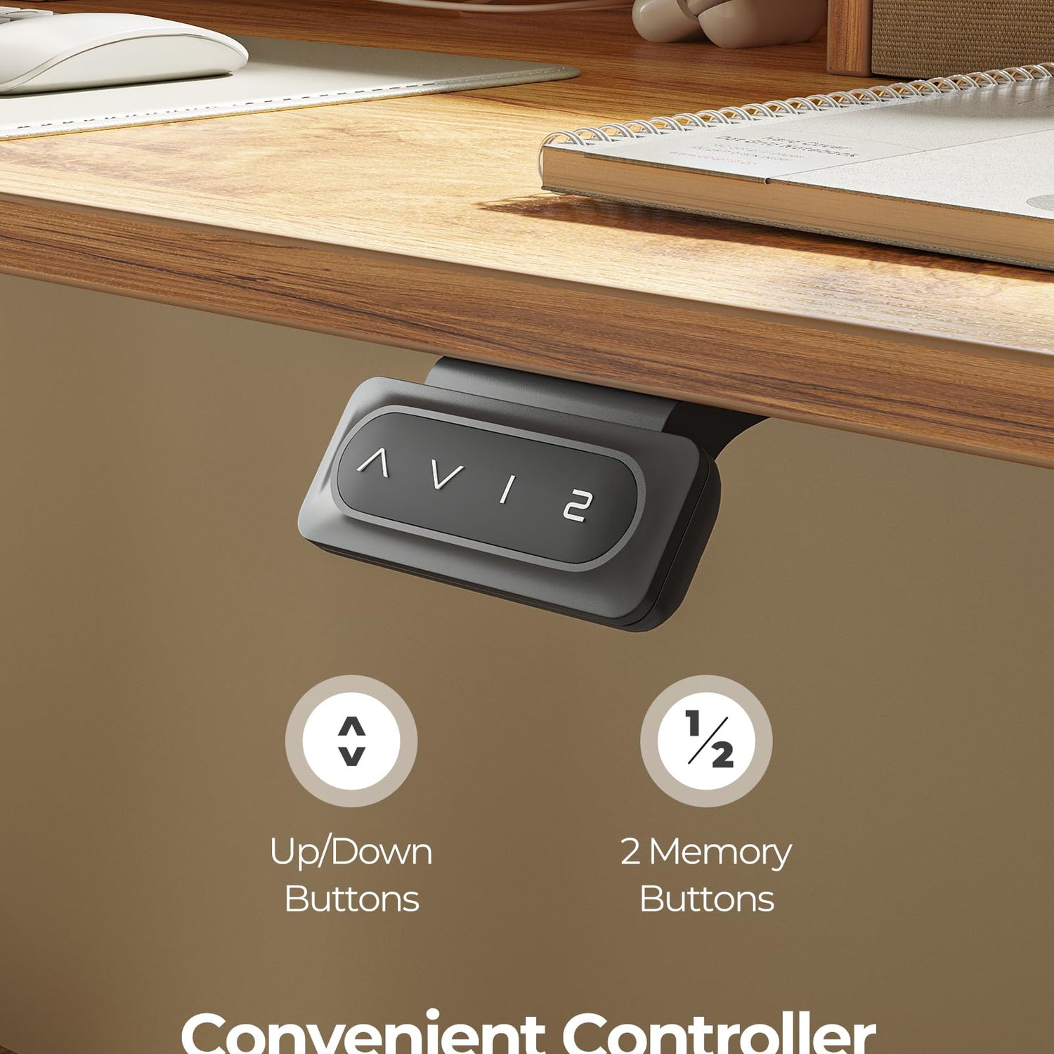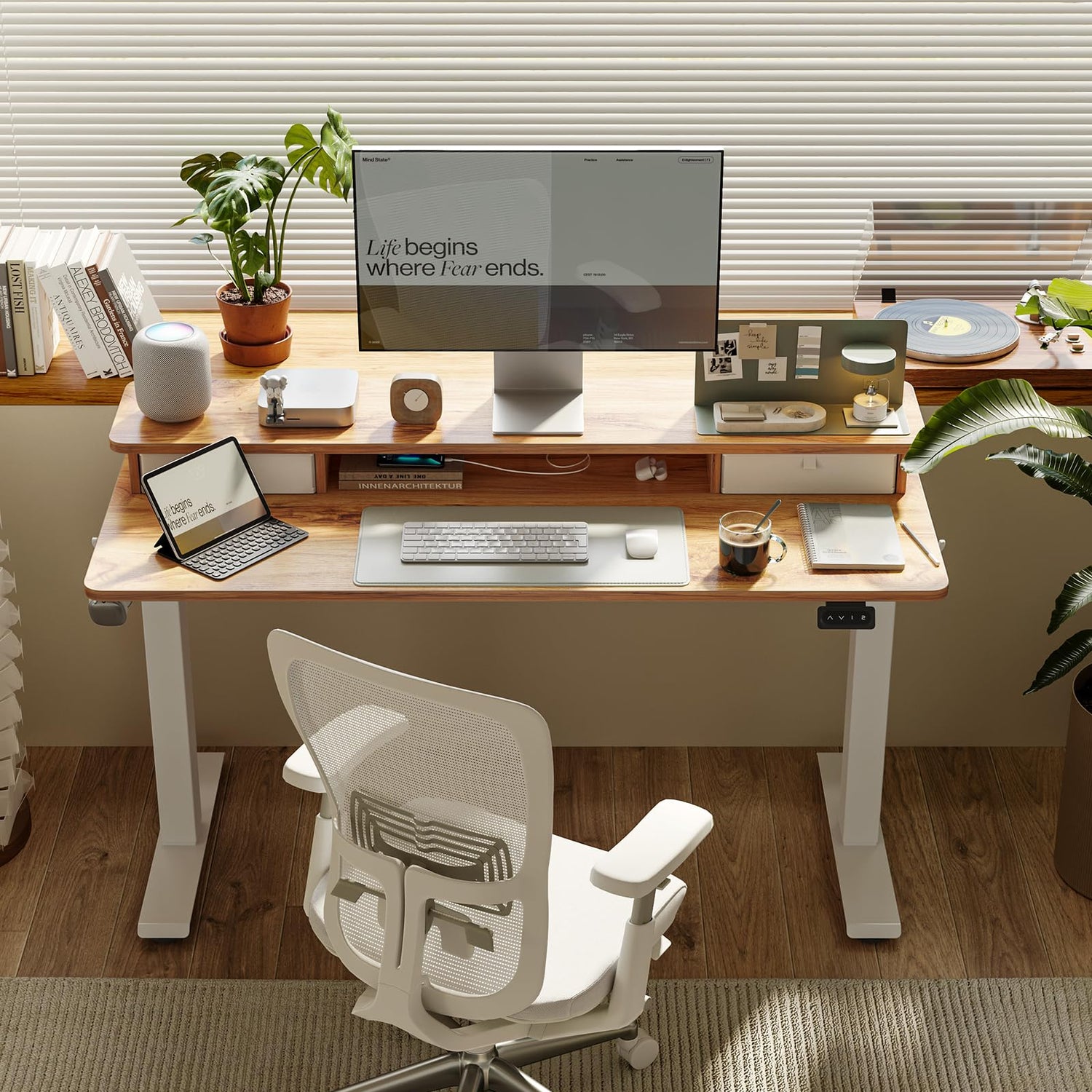 Details: FEZIBO 55 x 24 Inch Height Adjustable Electric Standing Desk with Double Drawer, Stand Up Desk with Storage Shelf, Sit Stand Desk, Light Rustic