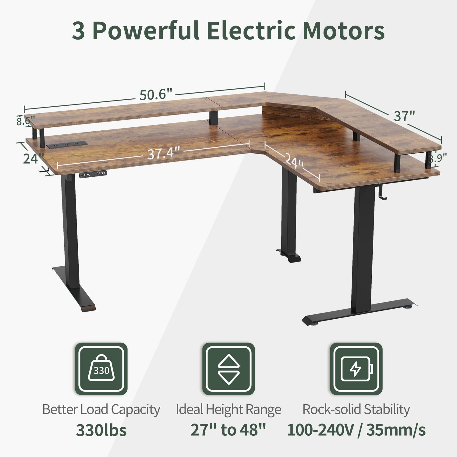 - Meet More Needs: The L-shaped standing desk includes a built-in power strip with 2-outlets&1 USB &1 Type-C port, a full monitor stand for an Ergonomic eye view, and more space for organization, the desk also has 3 preset buttons to customize your desired heights from 27.56" to 47.24" with the collision-avoiding feature