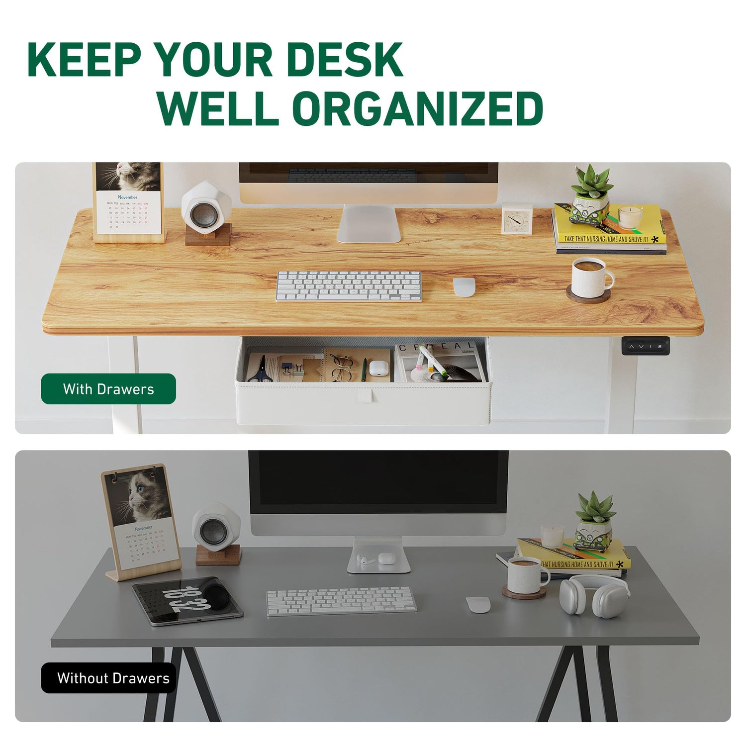 - Storage Drawer: 15.7 inches wide and 3.15 inches high storage space for daily work and life. The upgraded leather drawer with waterproof function and better texture, keep your desk clean and comfortable.