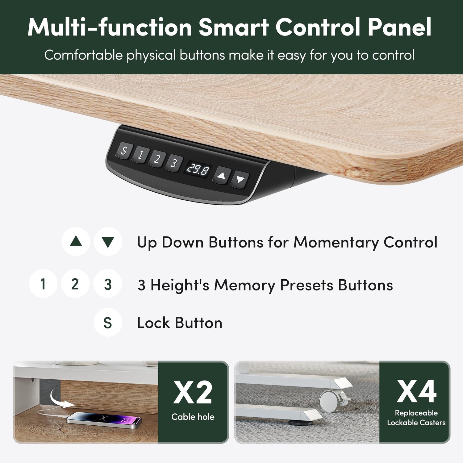 - Electric Lift System: 3 preset memory buttons help customize your stand up desk between 27.5"-46.5"!