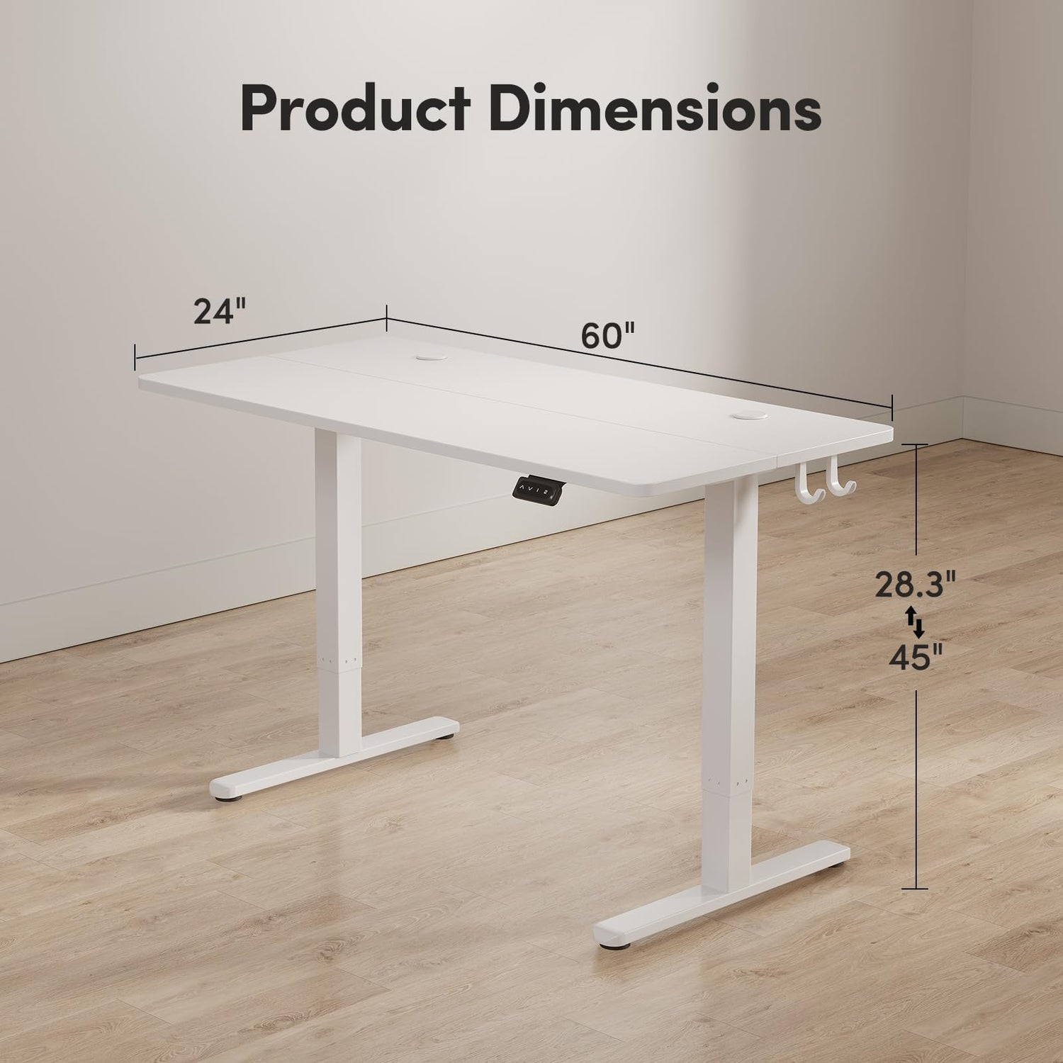 FEZIBO Electric Standing Desk Adjustable Height, 60 x 24 Inch Sit and Stand Desk, Home Office Desk, Ergonomic Workstation Computer Desk, White