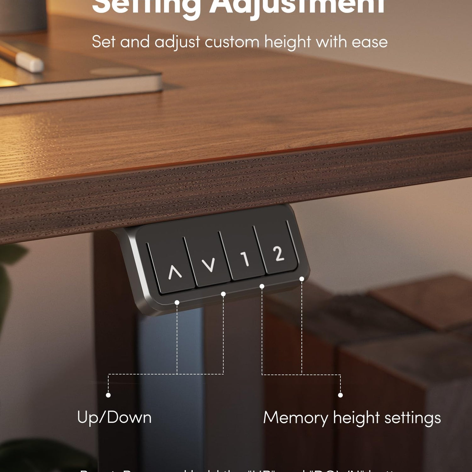 - Memory Height & Anti-Collison Technology: Standing desk has 2 programmable memory height buttons. If the adjustable desk encounters obstacles when lifting, it will move 2cm in the opposite direction to avoid possible damage or injury