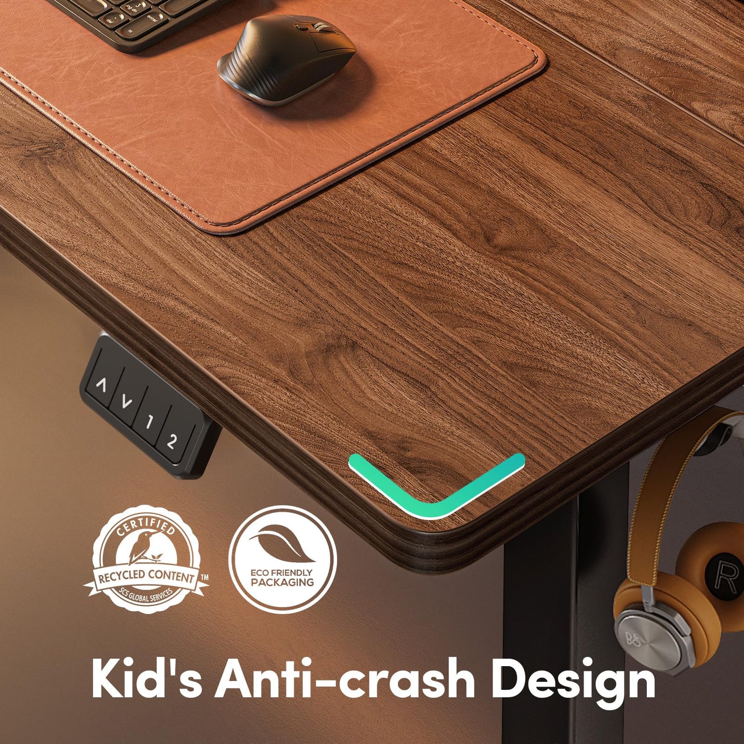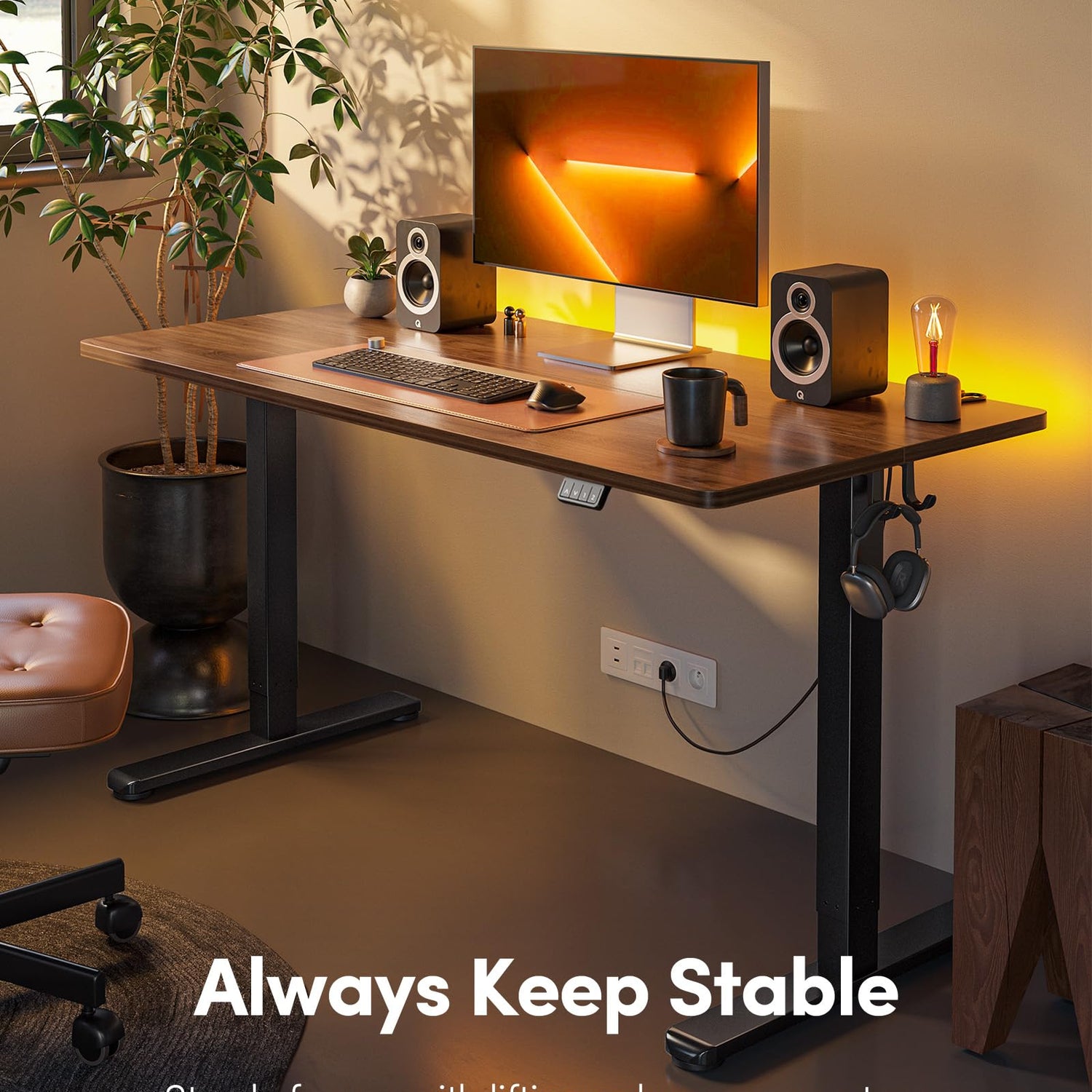 FEZIBO Electric Standing Desk, Height Adjustable Stand up, 48 x 24 Inches Sit Stand Home Office, Computer Desk, Black Walnut
