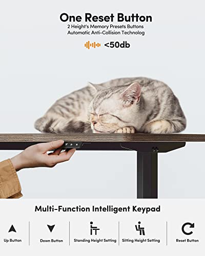- Electric Height Adjustable: The desk has 3 preset buttons to customize your desired heights from 27.3" to 45.49"