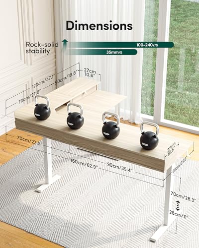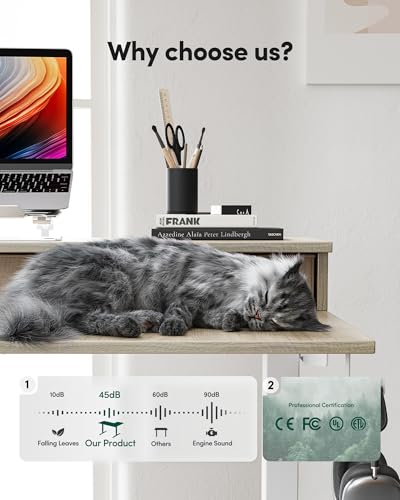 - [Sturdy & Less Noise] The L Shaped Electric Standing Desk boasts a thick cold-rolled steel frame. Holds up to 176 lbs (80kg), stable with desktops, printers, file racks. This Home Office & Gaming Height-Adjustable Table lifts at 35mm/s. Noise ≤45dB (like soft talk). Doesn’t disturb family or neighbors