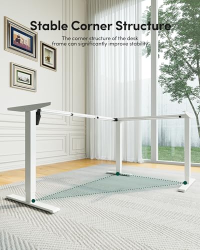 - [Reversible L-Shaped Top] This L Shaped Electric Standing Desk features a unique flip design. Swaps left/right long sides freely, fitting small studies and gaming rooms perfectly. As a Home Office & Gaming Height-Adjustable Table, its reversible tabletop gives more space. Left holds laptops. Right leaves space for writing or coffee. Maximizes corner space