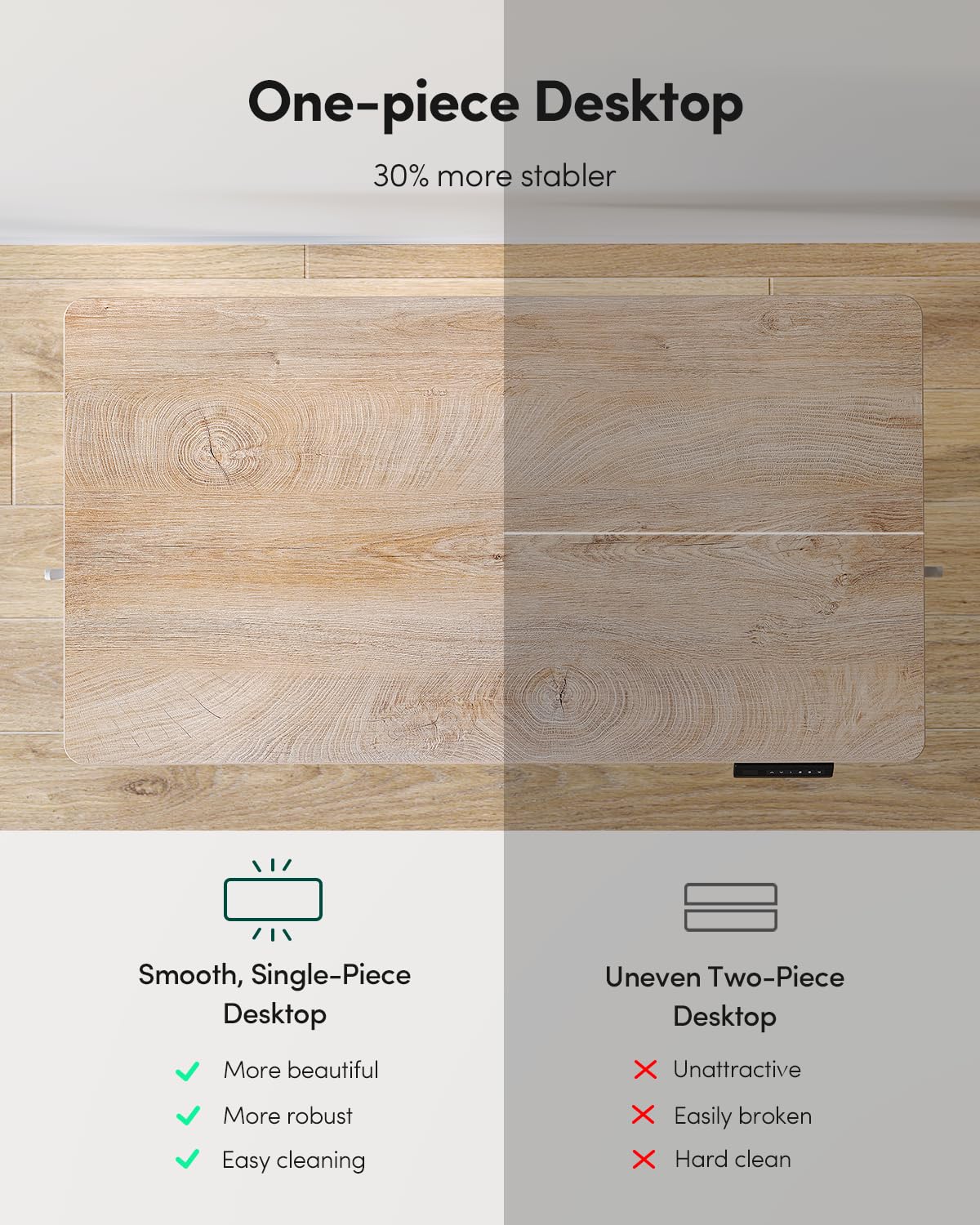 - Seamless One-Piece Design: Fezibo adjustable standing desk features a smooth, one-piece desk surface without visible seams. Unlike other models with joined panels, this seamless design offers 30% enhanced stability to provide a solid foundation for your equipment.