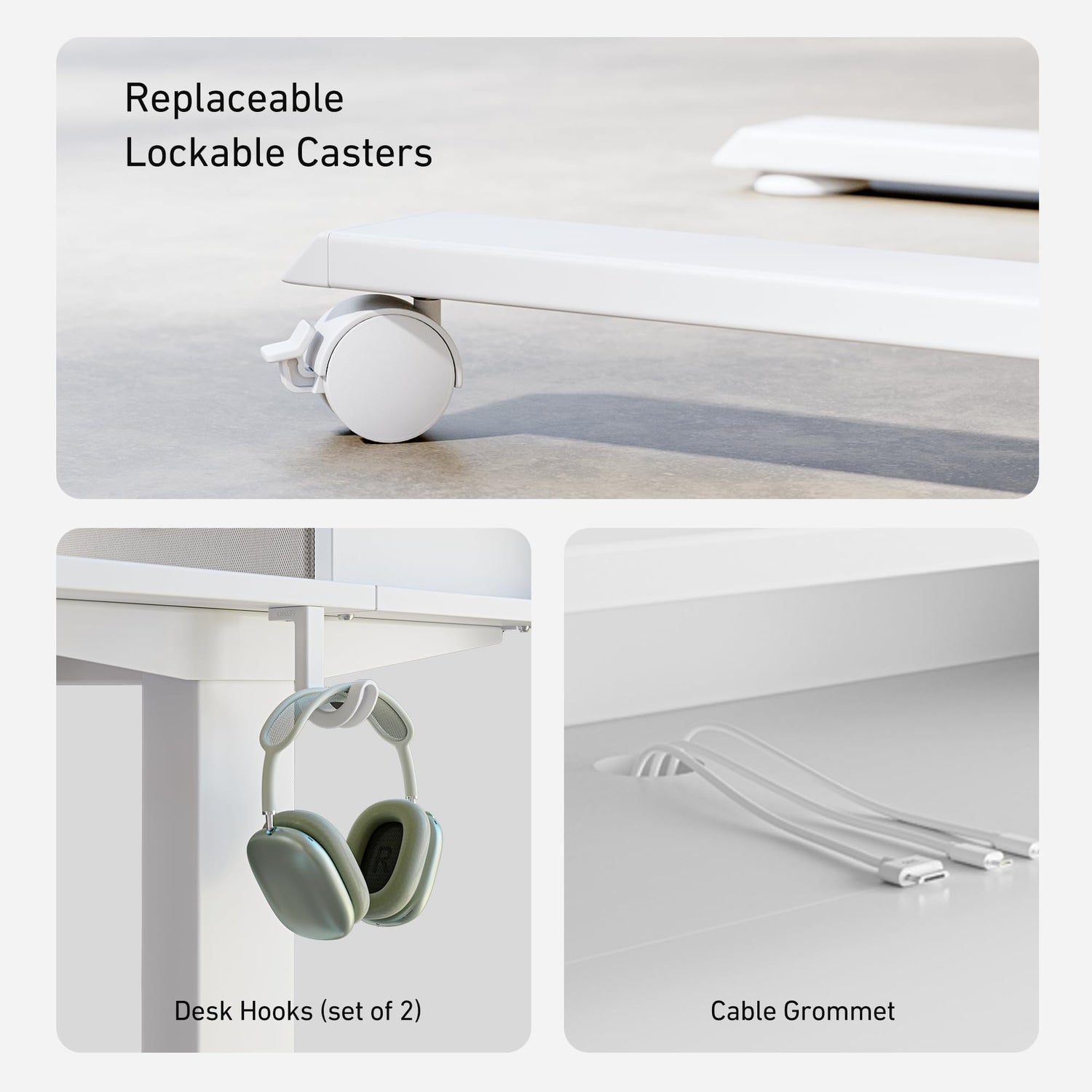 - Lockable Casters: Swivel casters rotate 360 degrees, which makes turning your desk mobile and your floor protected from scratches