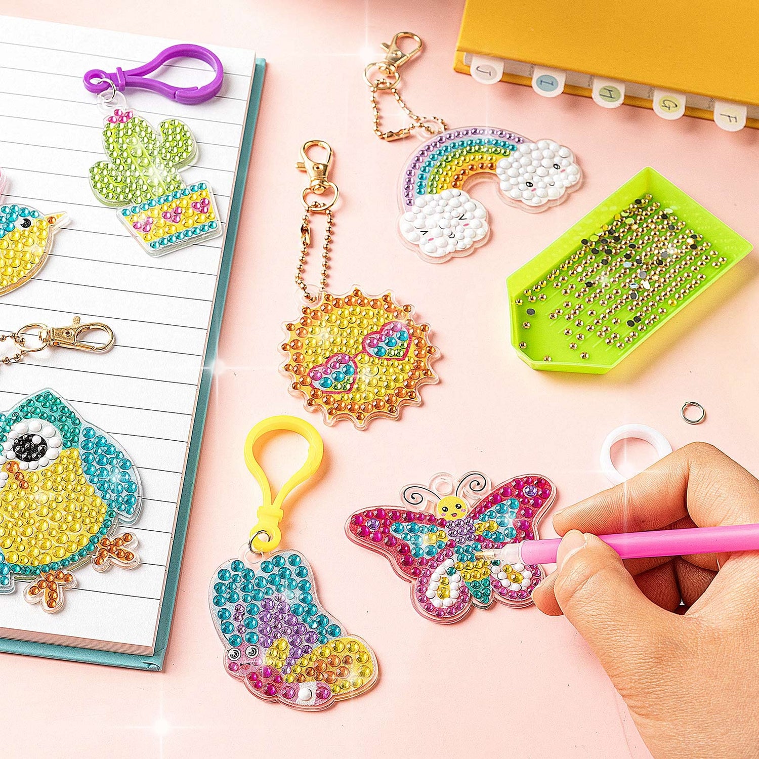 - IDEAL DIY PRESENT CHOICE: Each of our diamond art key chains comes with a corresponding keychain and hook, you can hang the finished keychain on your school bag, car keys, cell phone. Make your own unique gemstone keychain. Also a perfect present for Birthday, Christmas.