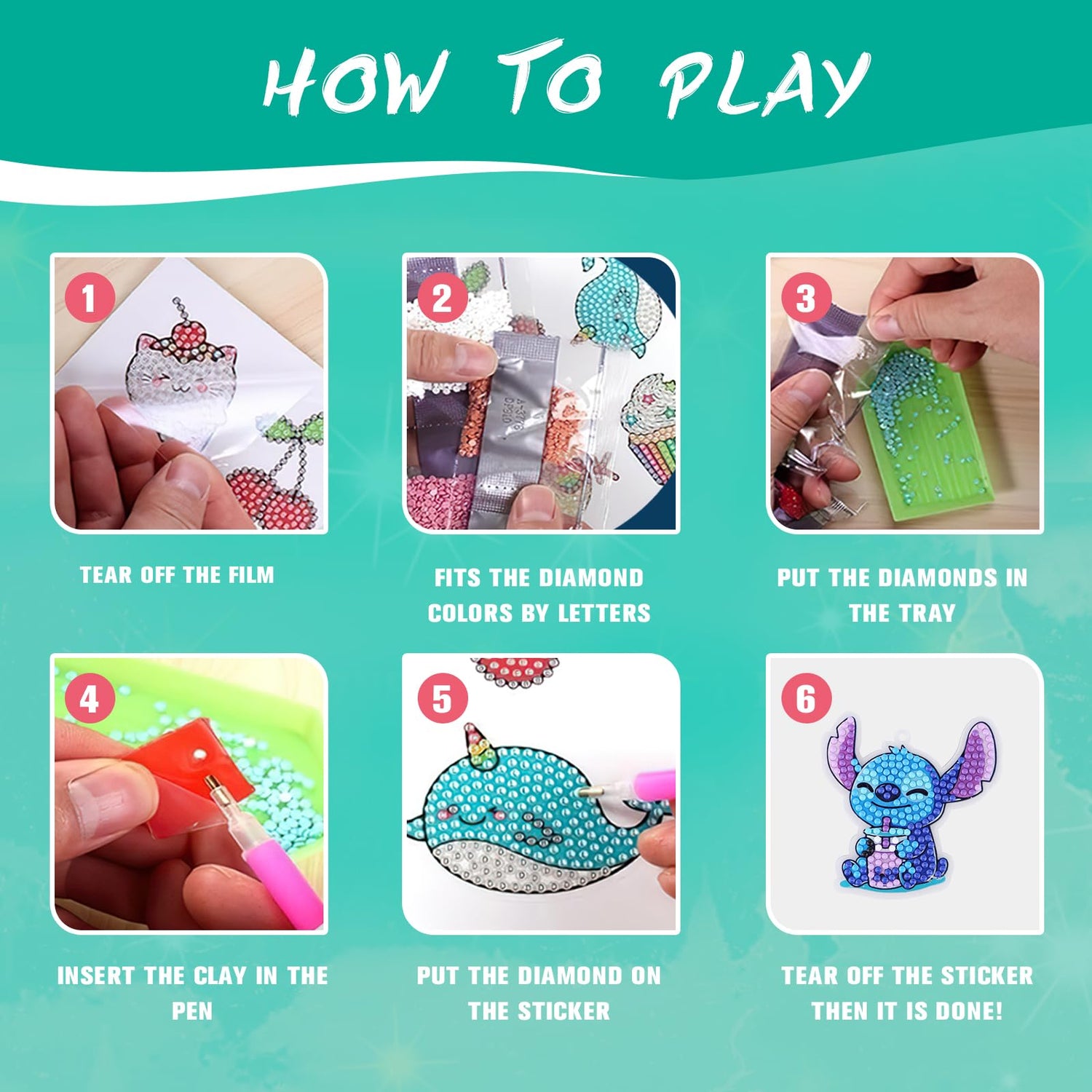 - [Easy to Operate]: Our diamond art Paintings Stickers & Keychains are so simple and intuitive to use that even young beginners can do it themselves without any help. All the steps are paint by numbers, just choose the corresponding diamond that you will get a personalised diamond art.