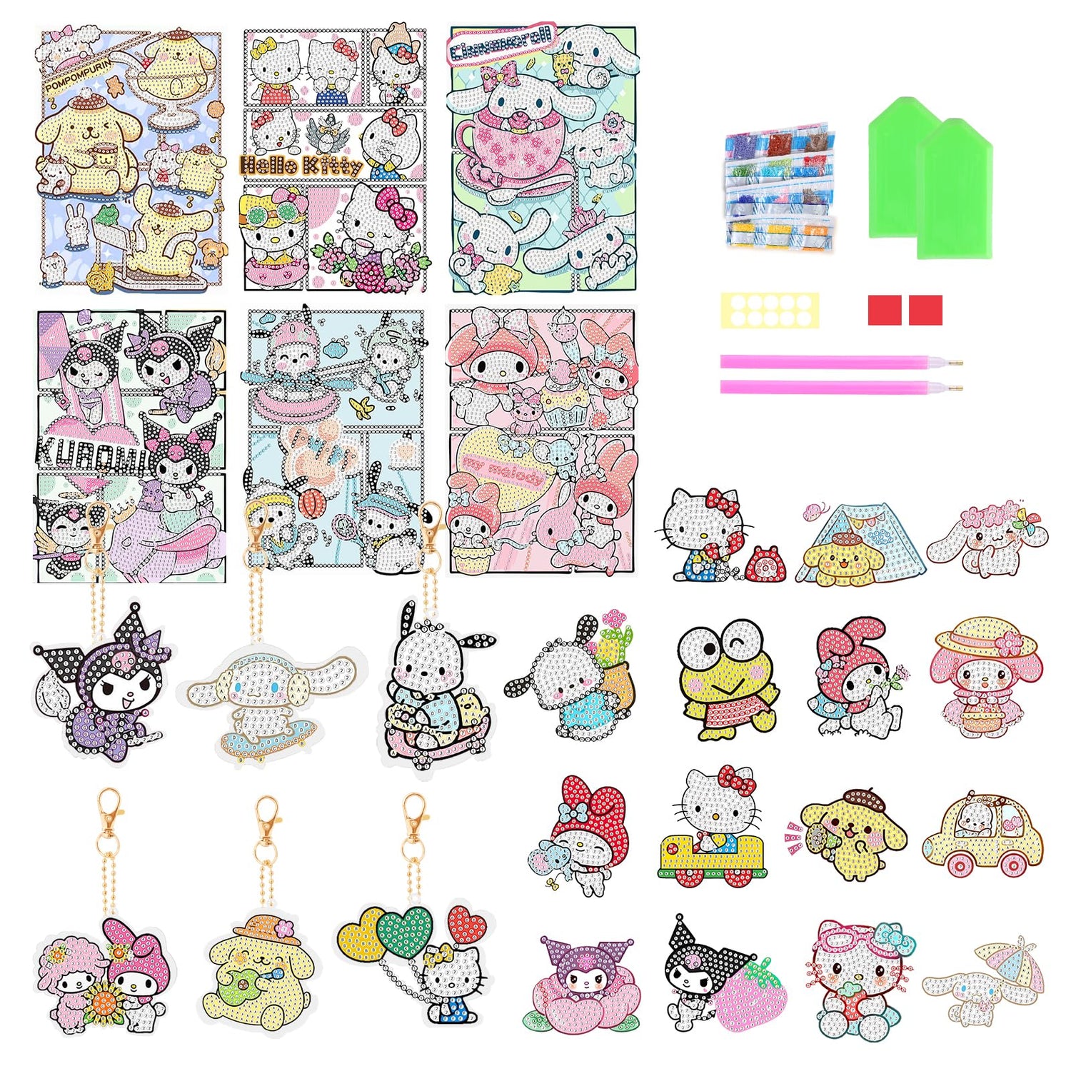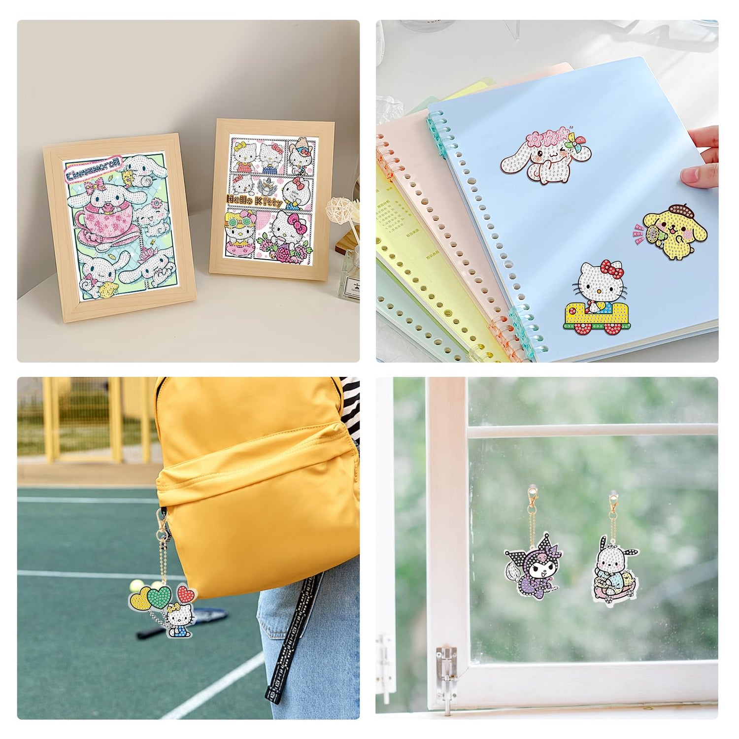 - [Endless Fun for Beginners]: With distinct designs measuring 8 inches x 6 inches of painting ,Stickers and keychains of various classic cartoon characters, accompanied by a user-friendly color guide, this creative endeavor is crafted to entertain beginners for hours. Moreover, it doubles as an exceptional family activity, fostering a shared and enjoyable experience.