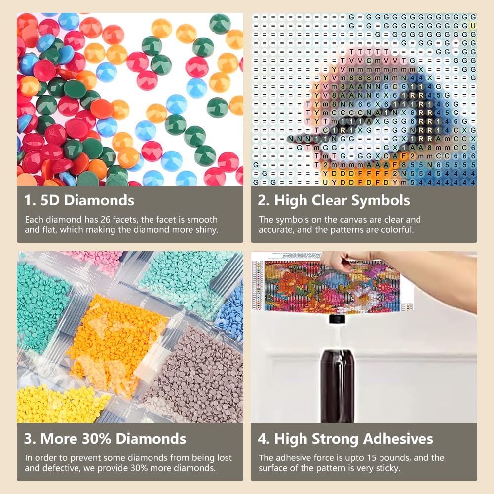 - 【EASY TO READ DIAMOND PAINTING KITS】The diamond art numbers and symbols on the HD canvas of Flower adult diamond painting Kit are clear and easy to read. Diamond art on HD printed canvas is waterproof and has a uniform texture