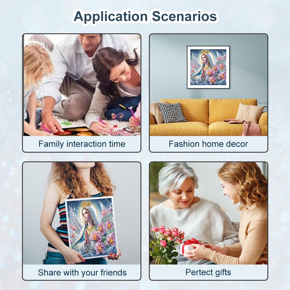 - [Add Joy to Life] Virgin Mary Diamond art painting kits can improve hands-on ability, reduce stress and ease emotions, experience a sense of accomplishment, enhance self-confidence and cultivate patience, suitable for adults, teen, seniors and beginners