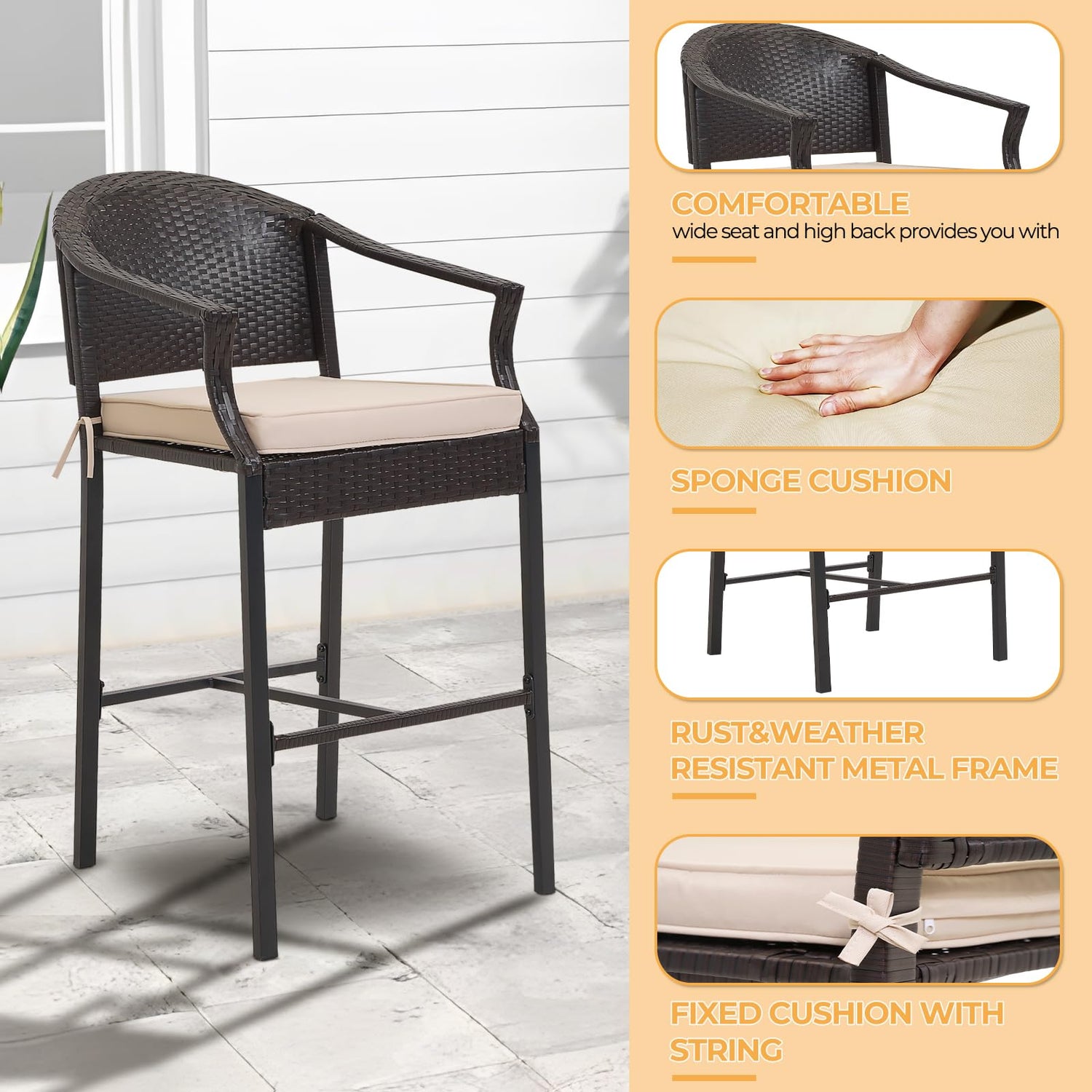 - Comfortable Outdoor Pub Table Set: The rattan height chairs are made of PE hand-woven rattan, with cushion is soft and let you comfortable. This high top patio furniture are easy to clean and maintain and used in any season