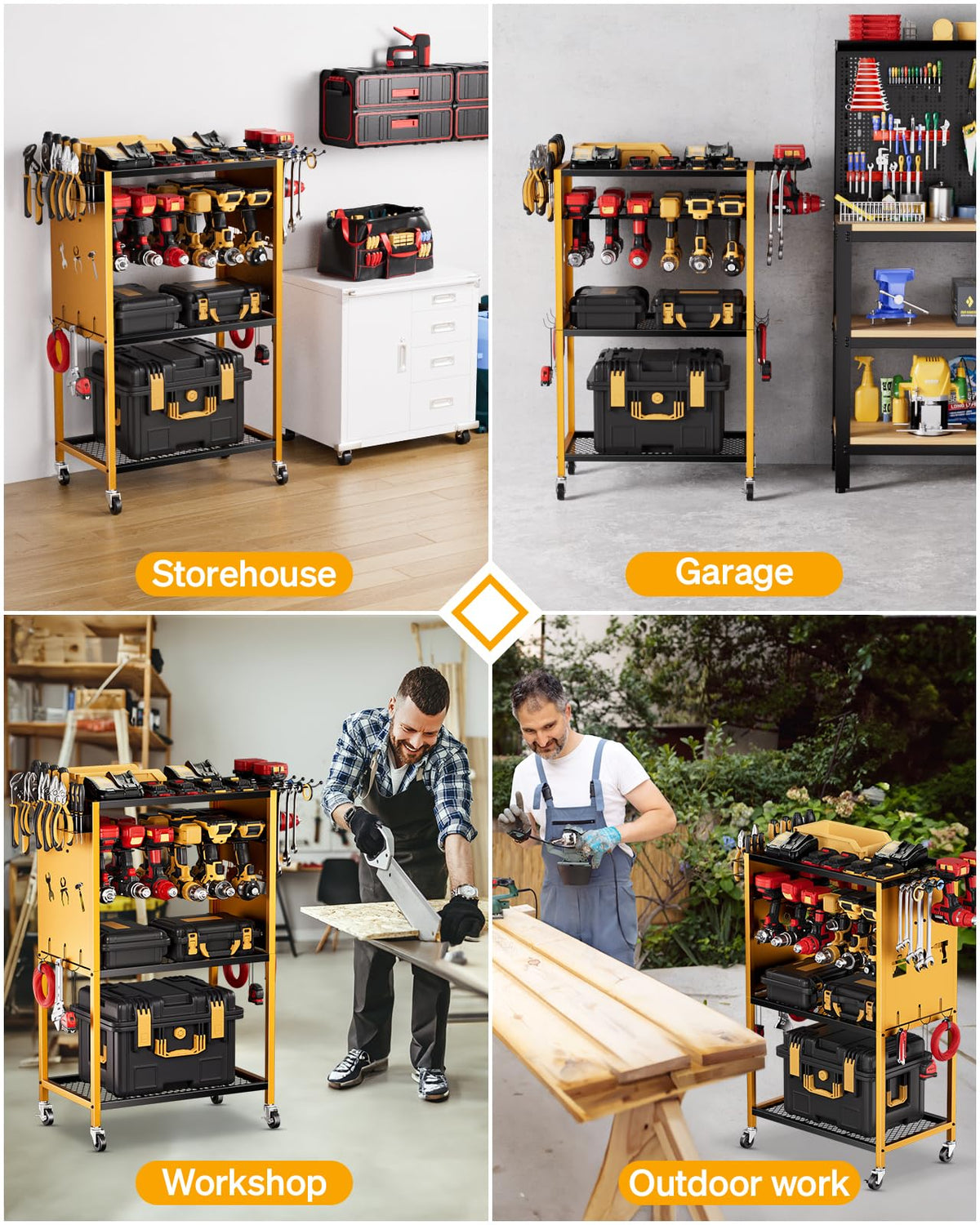 FHXZH Power Tool Organizer with Wheels - Garage Power Tools Storage Cart, Large Rolling Drill Holder Cordless Battery Storage, Heavy Duty Floor Standing Utility Rack Gift for Men, Husband, Father