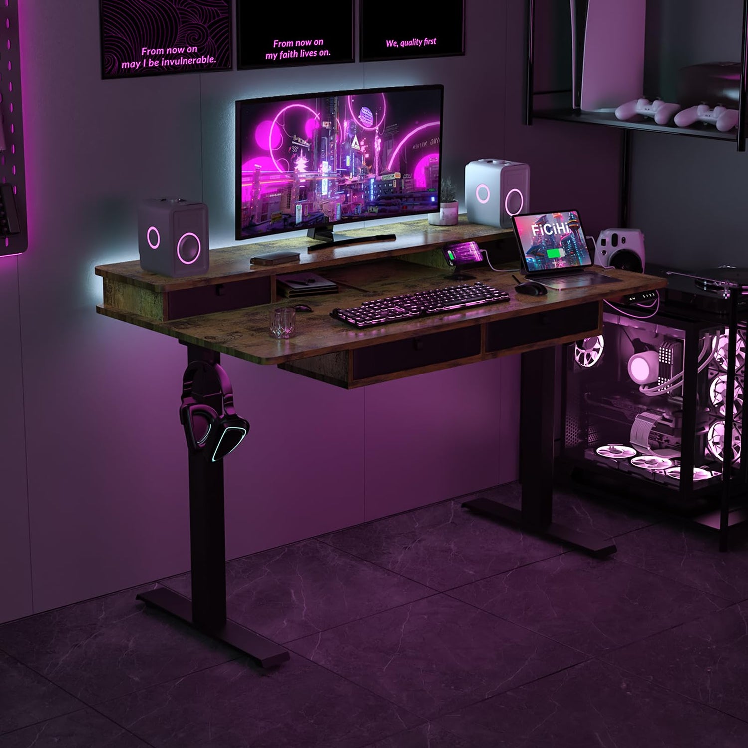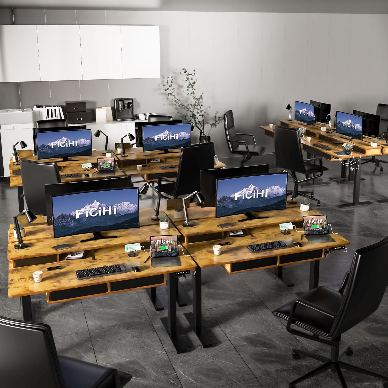 • 【Widen desktop】FICIHI electric office desk has widened the desktop area from 24 inches to 30 inches, allowing you to have more office space, maintain sufficient distance from computer monitors, and protect your eye health