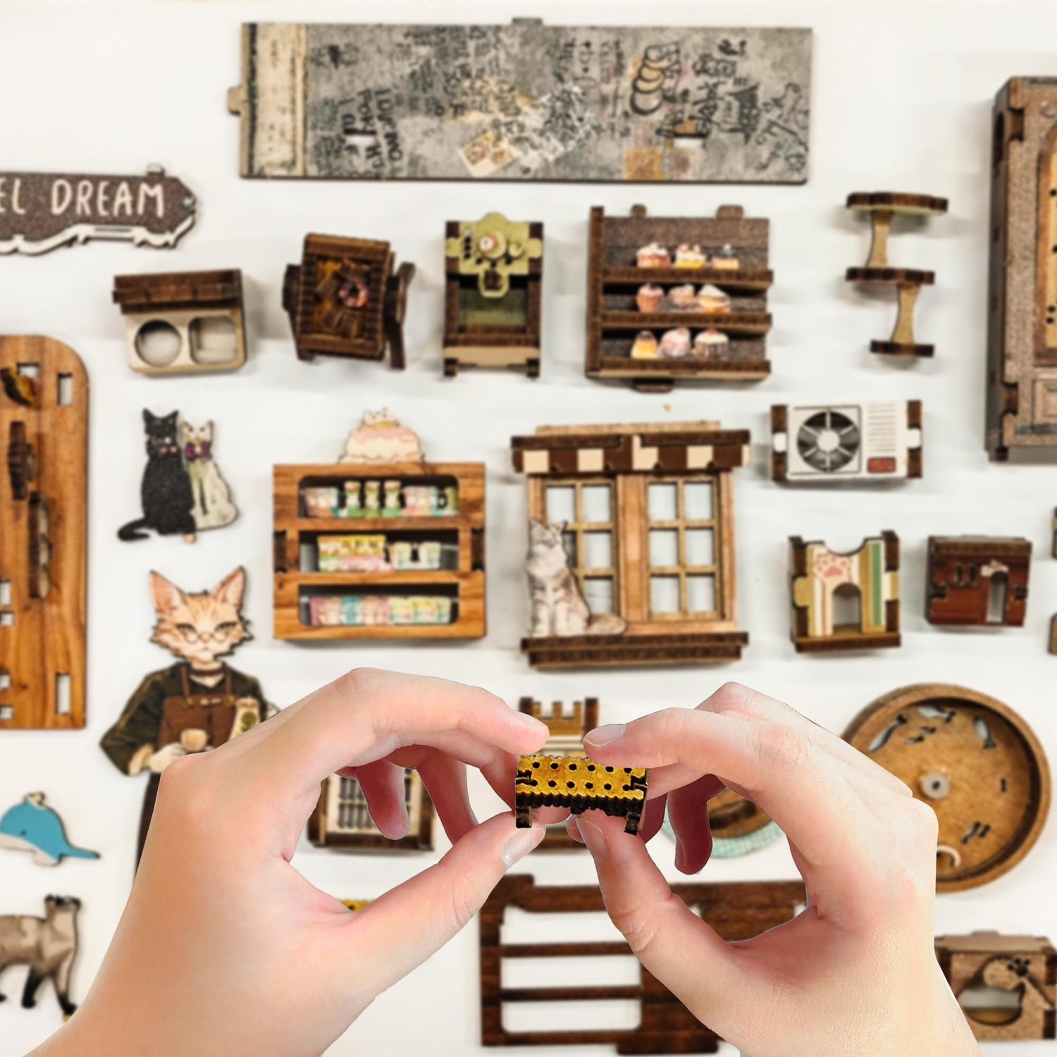 - √Cat Theme Design: The Charming Cat Café book nook features intricate details like a cat barista, desserts, and vintage décor, making it perfect for cat lovers. Its wide-format design offers a spacious layout for captivating scenes, including a vintage staircase, counters, and cat-themed murals, creating an enchanting experience for leisurely discovery.