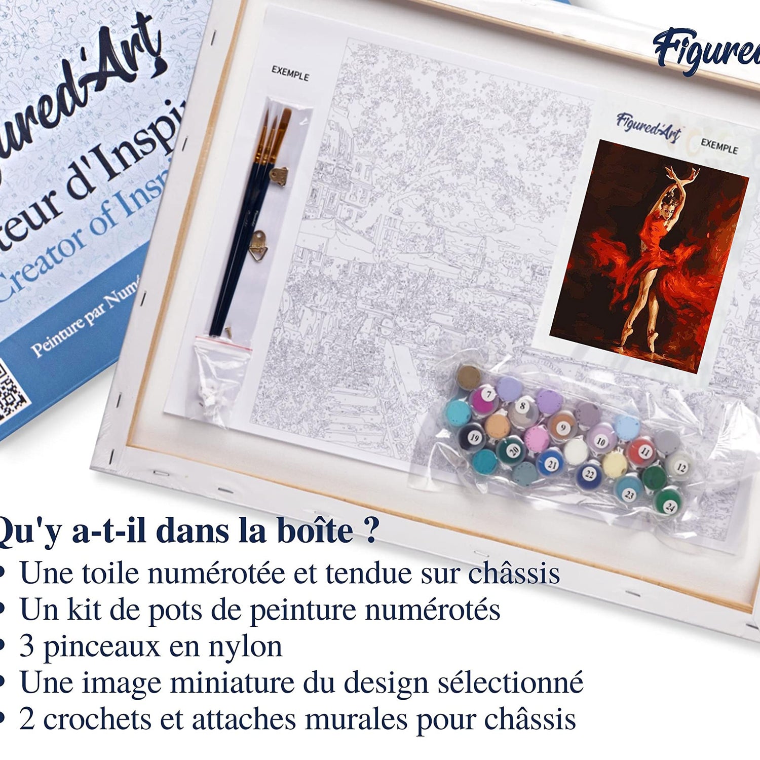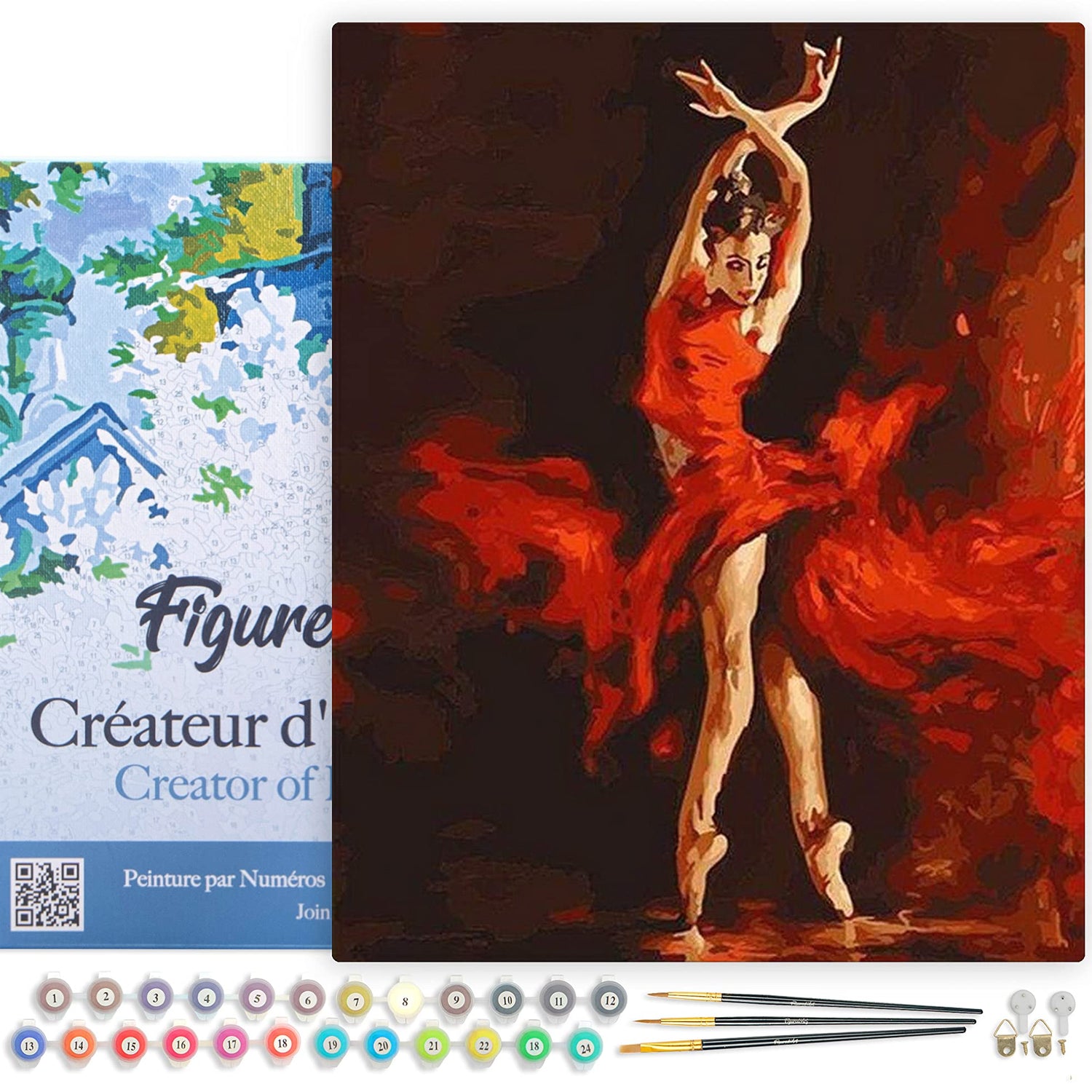 Figured'Art Paint by Numbers Kit for Adults with Frame Magical Red Dancer 16"x20" - Craft Art Painting DIY Kit Canvas Already Stretched on a Wooden Frame
