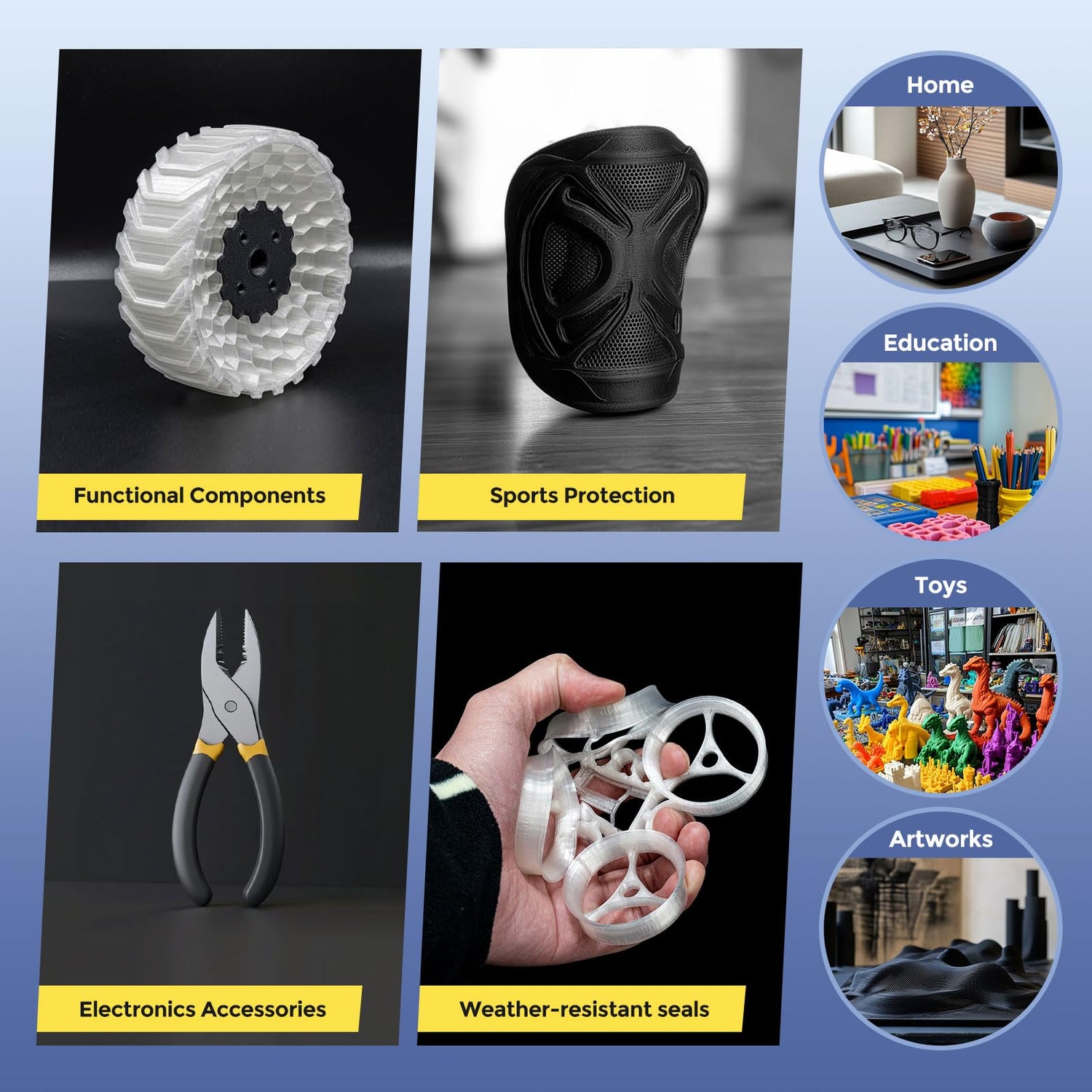 - 【Soft and High Elasticity】Features highly flexible and tough,FilaBees TPU is best choice for printing soft and durable parts. Boasting a 95A hardness, filament tpu combines high resilience, exceptional glossiness, and elasticity for flawlessly smooth finish