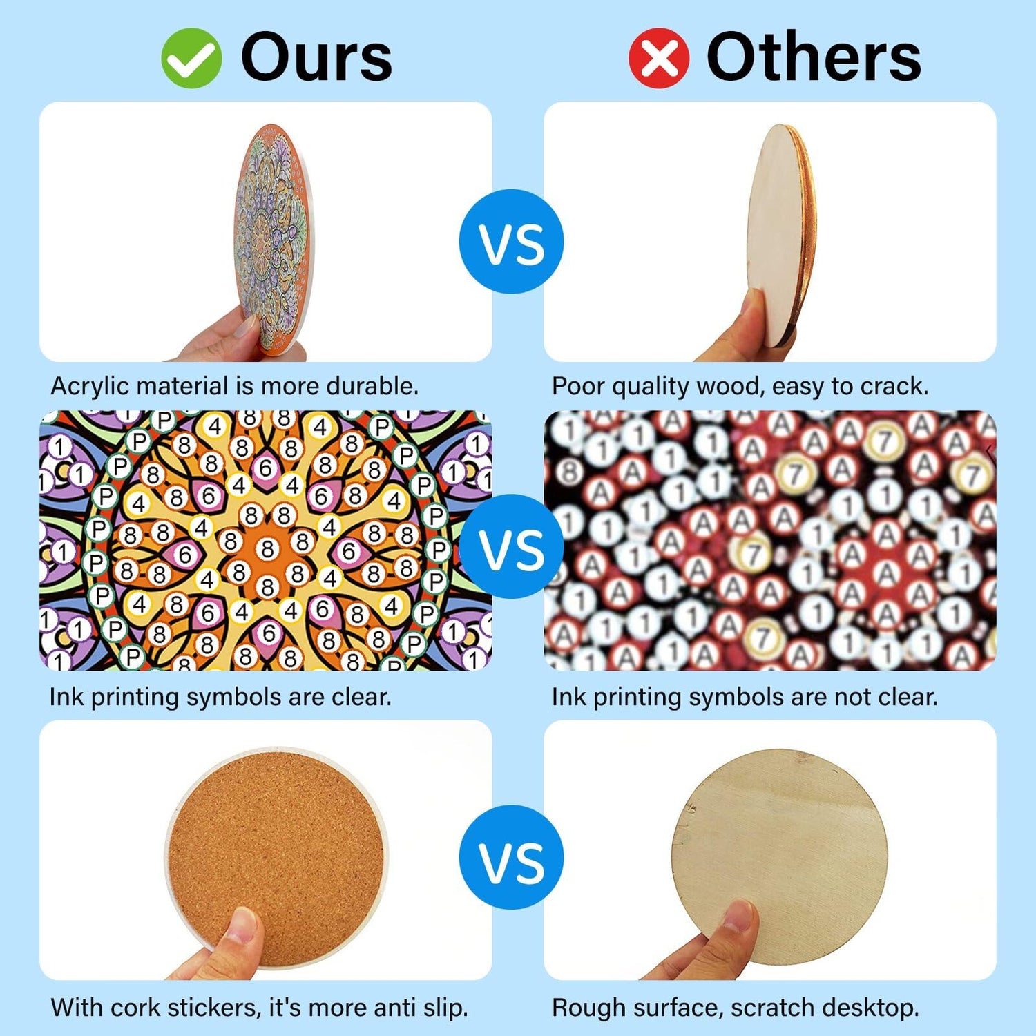 - 【Realiable Material】: Our premium diamond painting coasters are made of high quality acrylic with a non-slip back design, thick and durable, easy to clean and reusable.