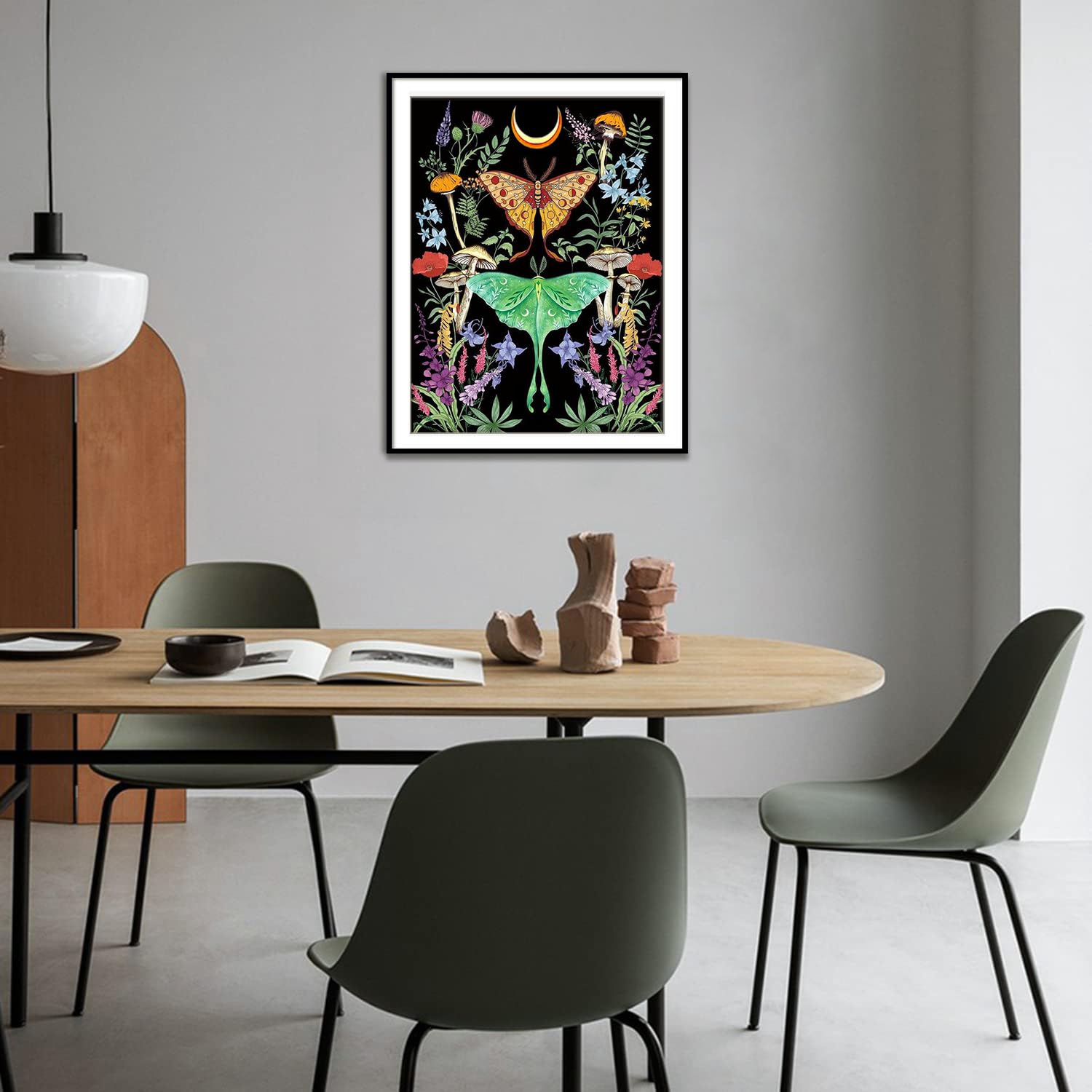 FILASLFT Diamond Art Kits for Adult Luna Moth,Butterfly Diamond Painting Kit for Beginner,Moon Mushroom Flower Diamond Dot,5D DIY Full Drill Paint with Diamond, Home Wall Decor and Gifts 12x16 Inch