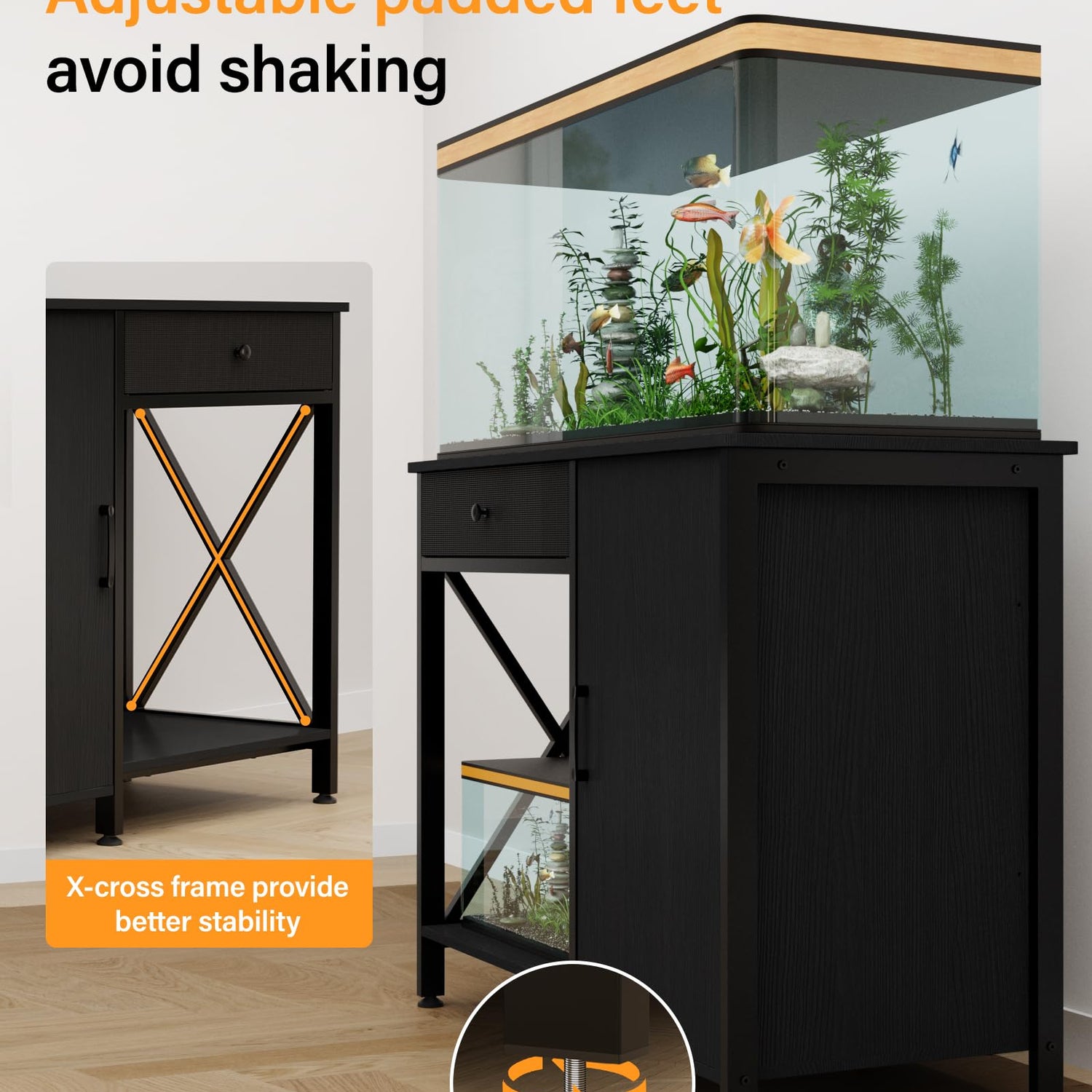 - Sleek, Modern Appearance: With a modern black metal frame and MDF tabletop, this aquarium stand fits perfectly into any contemporary, industrial, or rustic decor. Ideal for fish tanks, turtle enclosures, or reptile terrariums in the living room, bedroom, or office. (Aquarium not included.)