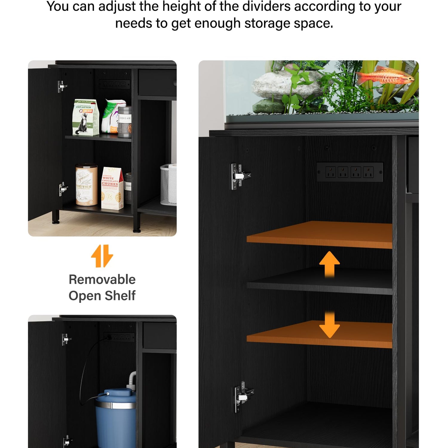 FILKO 40-50 Gallon Fish Tank Stand: Sturdy Aquarium Stand with Storage for 40-50 Gallon Fish Tank - Metal Terrarium Table Cabinet with Power Outlet for Reptile Turtle (40-50 gallon)