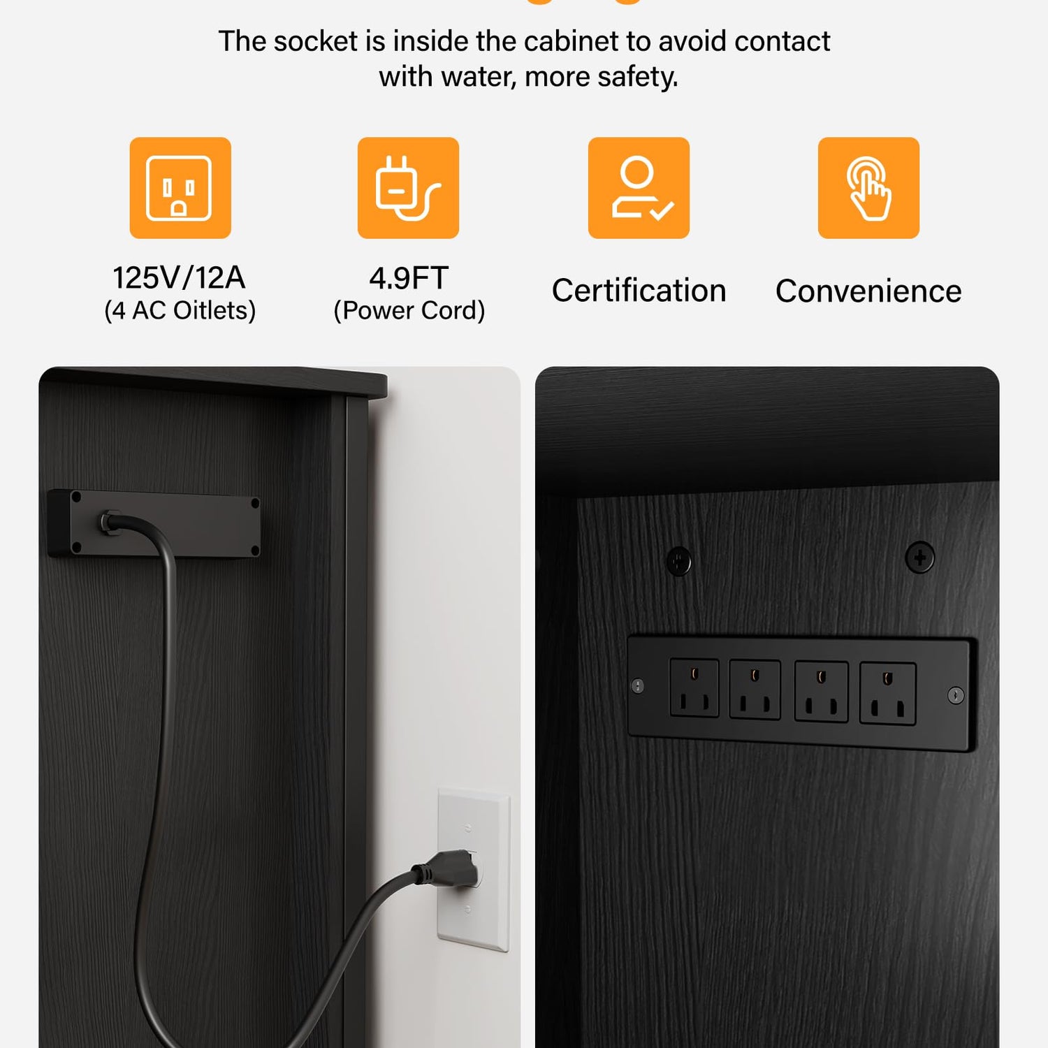 - Sturdy and Stable Tank Stand – Designed for Safety: This aquarium stand is engineered with a sturdy X-cross metal frame and adjustable foot pads, providing exceptional stability even on uneven floors. The solid structure minimizes wobbling, ensuring your fish tank stays securely in place at all times.The inward-facing power strip sockets prevent water from entering when changing the water in your aquarium.