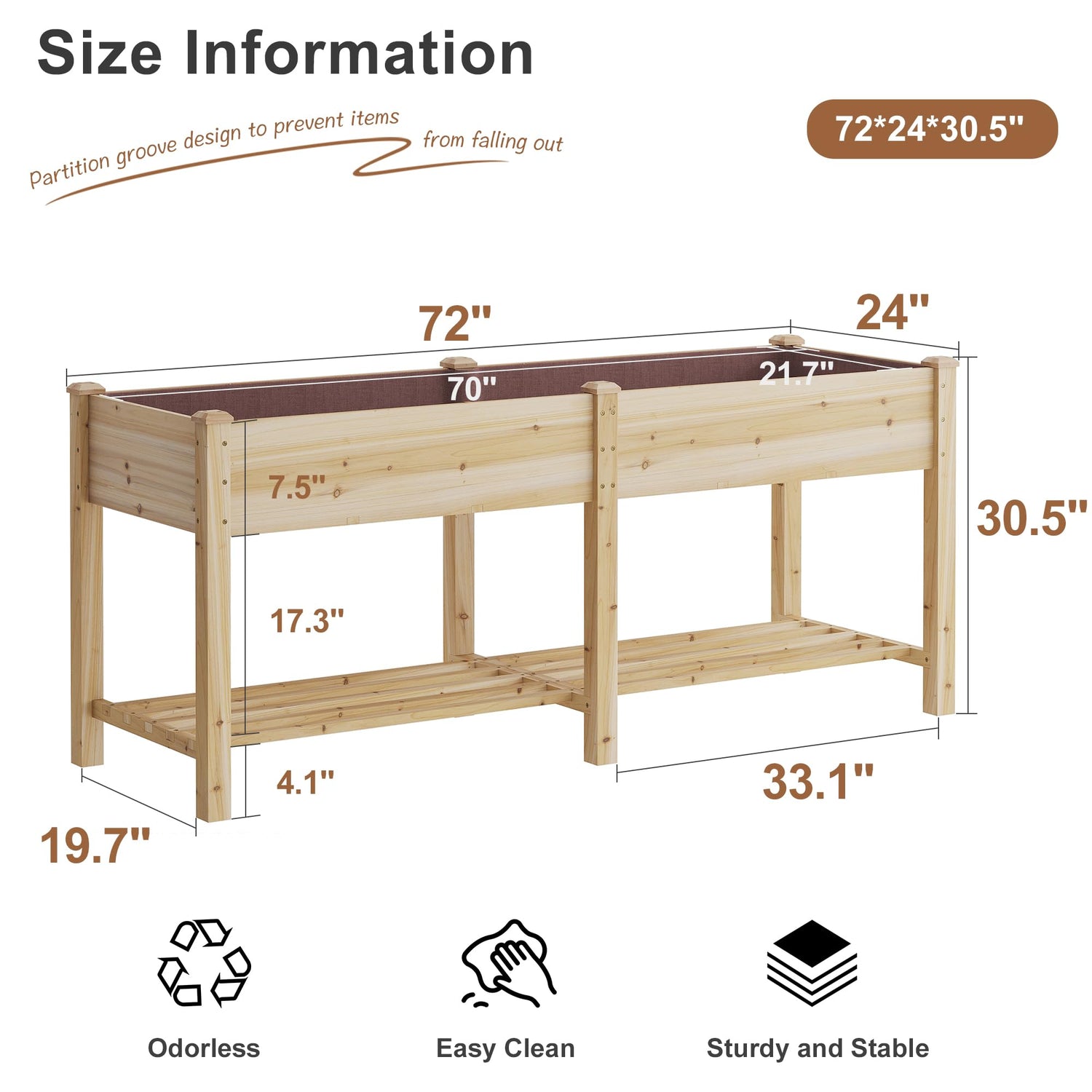 FILWH Raised Garden Bed with Legs Elevated Wooden Planter Box Stand Large Planter Stand Box for Fruits Vegetables Flowers with Divider with Bag - 72 * 24 * 30.5IN