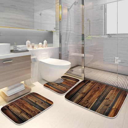Final Friday Rustic Farmhouse Wooden Board Print Bathroom Rugs and Mats Sets 3 Piece, Wood Western Country Bath Mat 20 x 31 in, Coral Velvet Memory Foam U-Shaped Contour Shower Mat Non Slip Absorbent