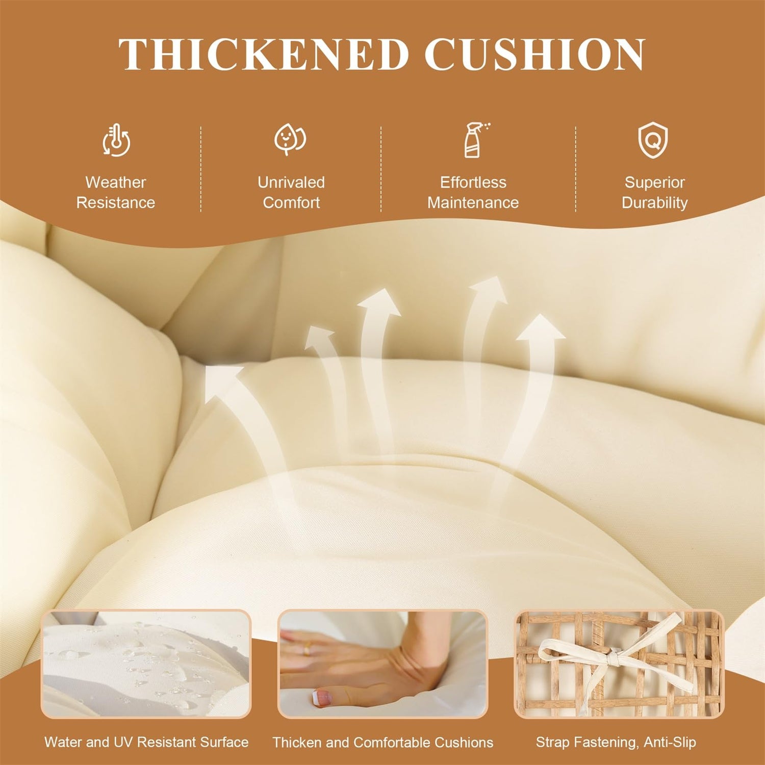• Ultimate Comfort: The 6.5-inch cushion provides a cozy and snug feeling, allowing you to relax and unwind in style; The seat cushion and headrest of double egg chair are equipped with secure straps, ensuring that they stay in place without any slipping