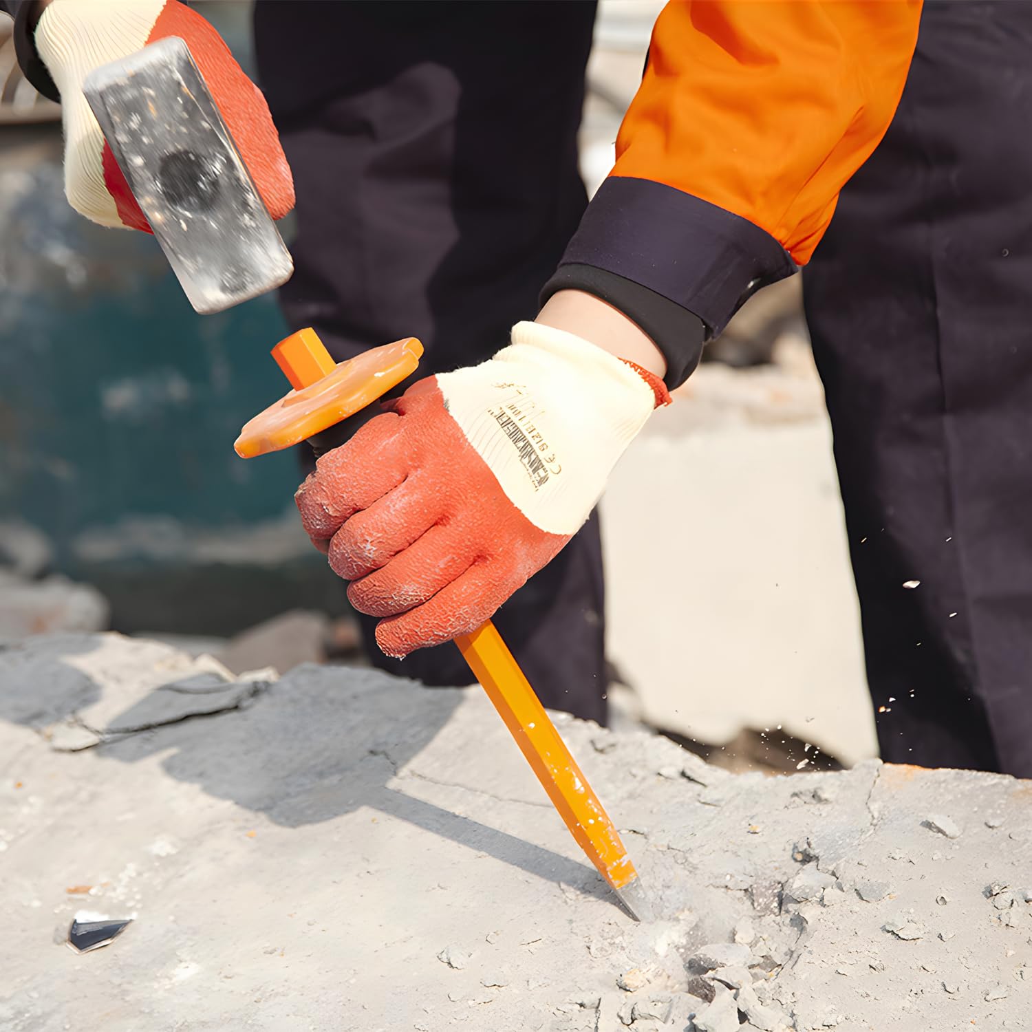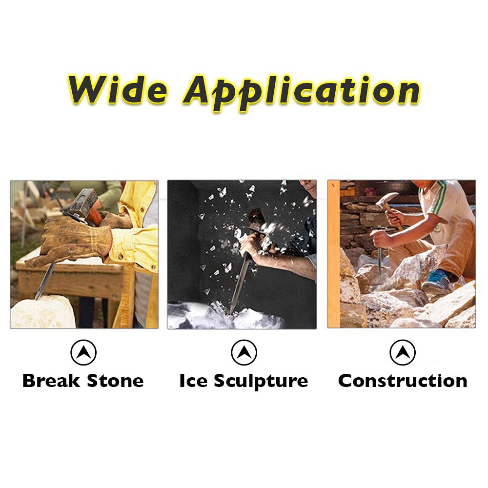 - 🔨 Applicable for metalworking and masonry, Ideal for cutting and splitting hard stone, brick, concrete and more. Total Length: 12 in (30.5 cm), Handle Length: 5.4 in (13.8 cm), The Length of Chisel Rod: 6.4 in (16.3 cm), The Diameter of Chisel End: 3/4 in (1.9 cm), Weight: 1.4 lbs (0.65 kg).