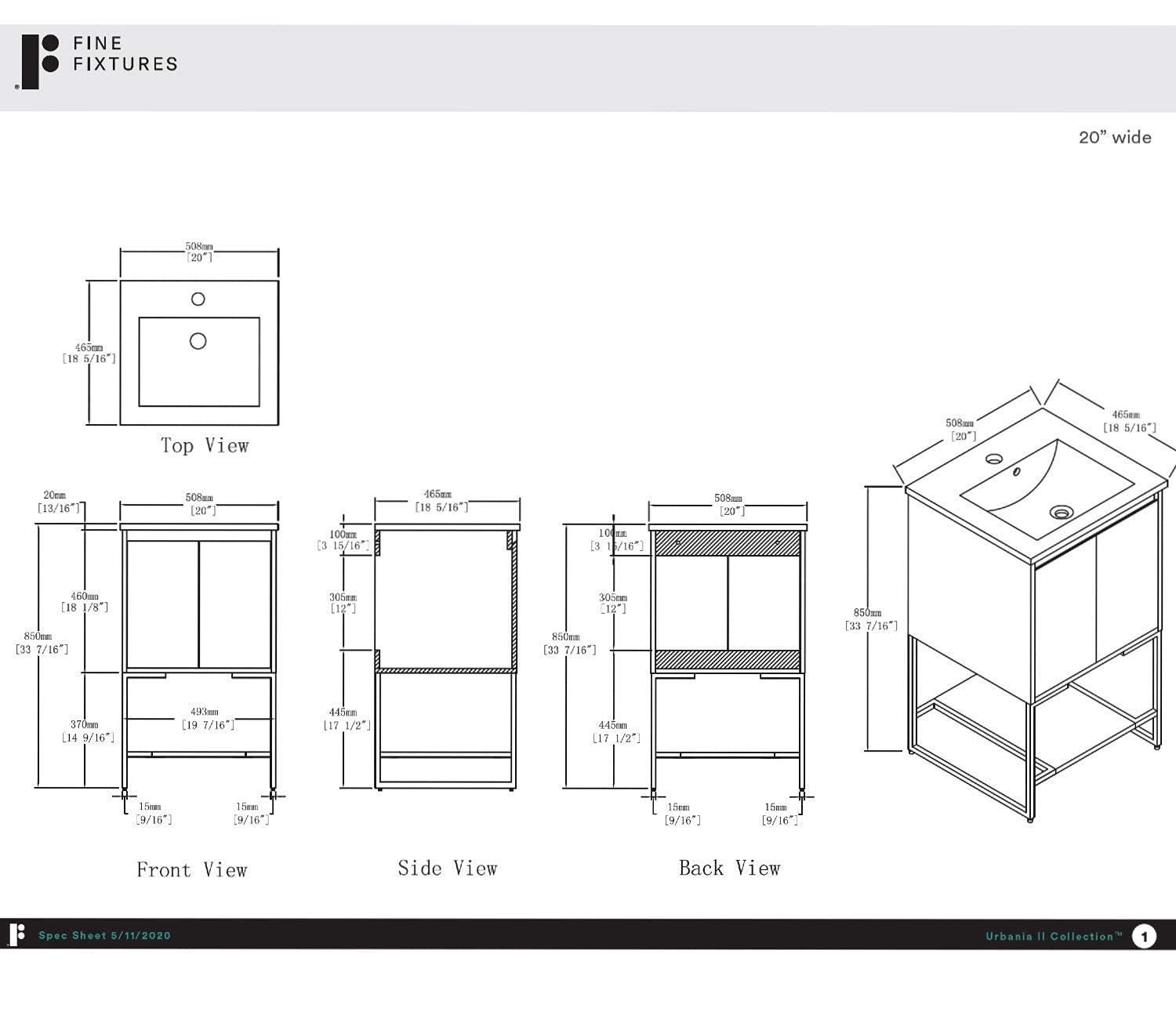 Fine Fixtures 20 Inch Bathroom Vanity with Sink - Modern Knob Free Design, Elegant Space-Saving Solution for Your Bathroom - Durable, Bathroom Vanities for a Contemporary Look - Urbania Collection