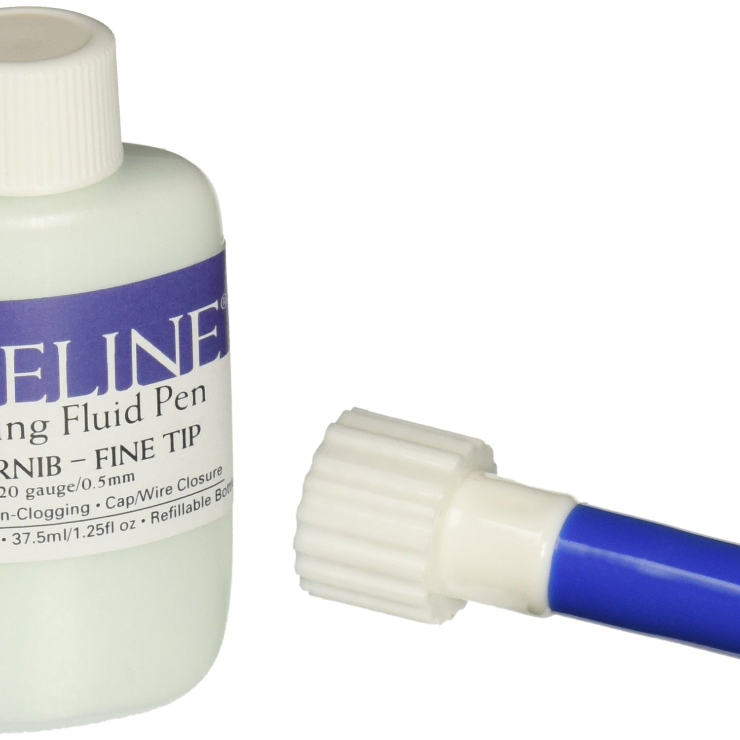 Details: FINELINE APPLICATORS-Masking Fluid Pen With Masking Fluid. This applicator bottle features a stainless steel dispensing tip for precise application of masking fluid and the unique Cap/Wire system is non-clogging and air-tight! This package contains one 1.25oz (37.5 ml) bottle of masking fluid with a 20 gauge (.5mm) tip and one separate cap for storage. Made in USA.