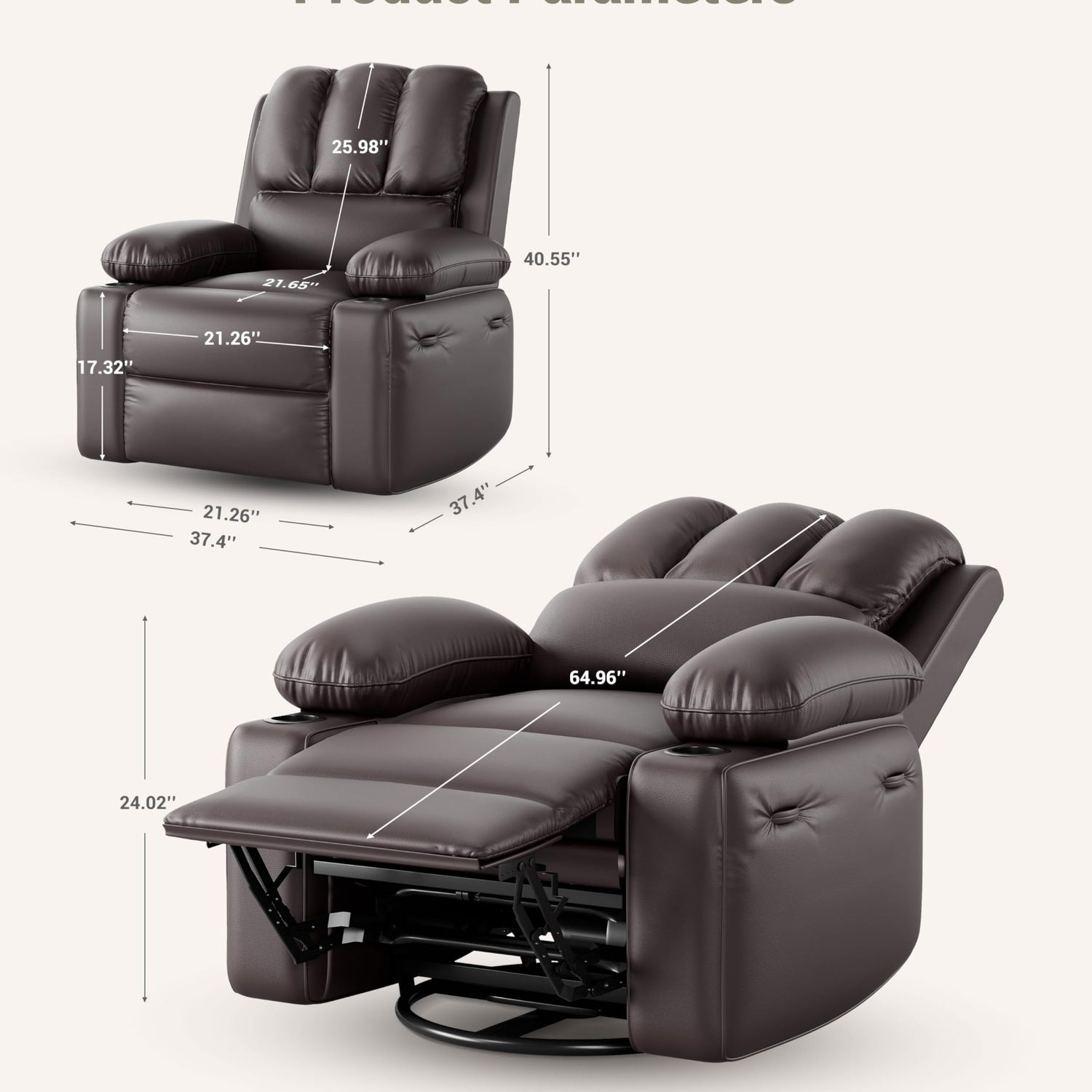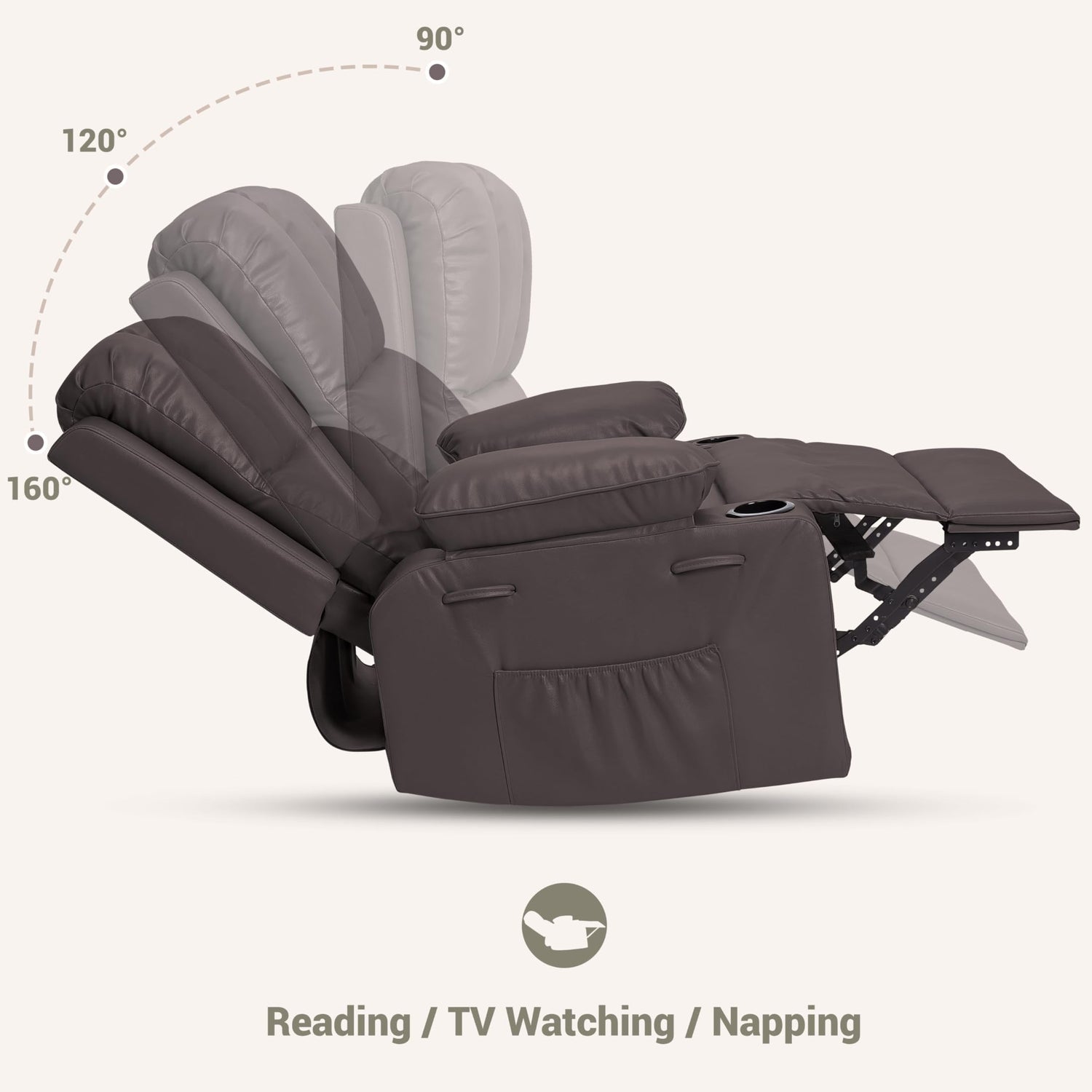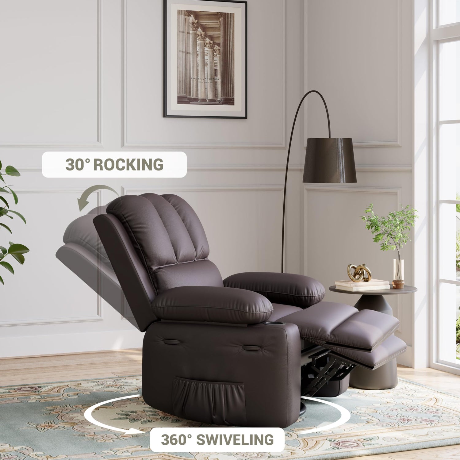 - 4. Durable Materials and Construction: Upholstered in high-quality leather, this recliner is built to last with sturdy construction that ensures stability and long-term use.