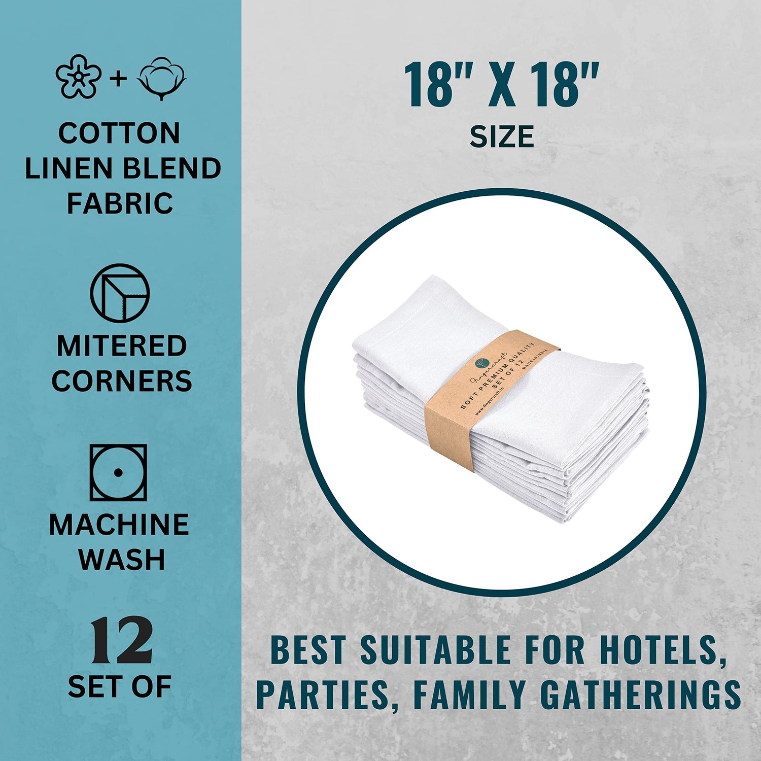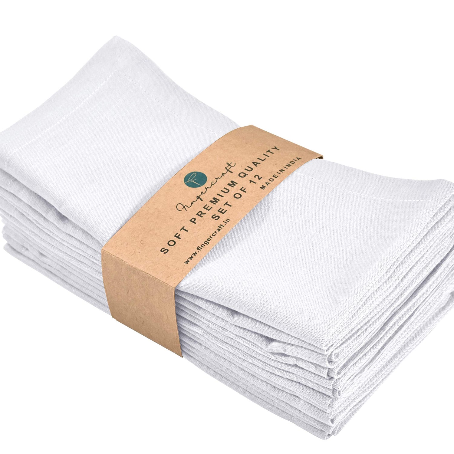Fingercraft Cloth Napkins, Cotton Linen Blend Napkins Cloth Washable 12 Pack Premium Quality for Parties, Christmas, Thanksgiving, Weddings, Mitered Corner Dinner Napkin for Every Day Use White