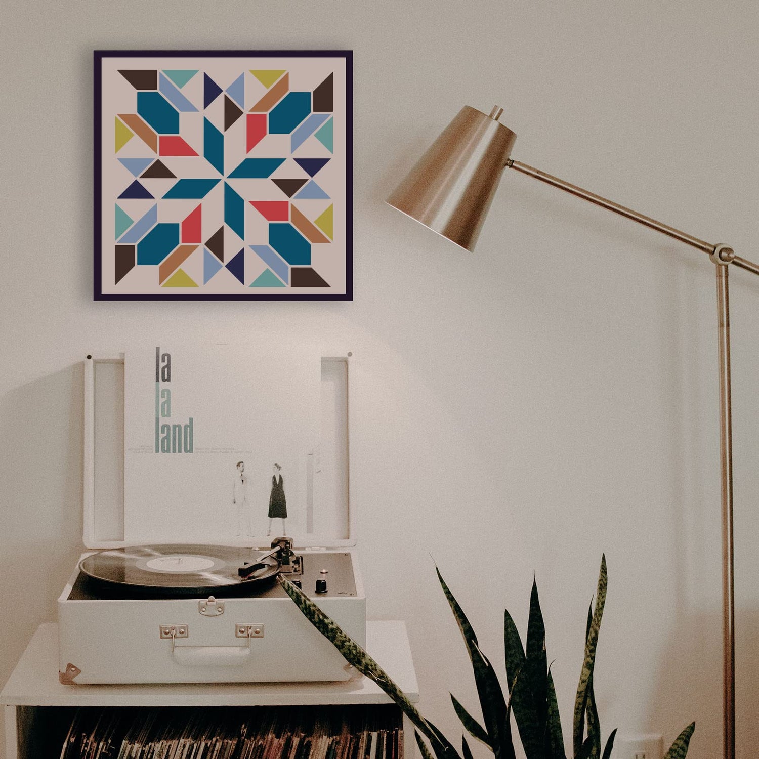 FINGERINSPIRE Barn Quilt Stencil 11.8x11.8inch Reusable Kaleidoscope Quilt Block Diamond Pattern Stencil for Painting on Patio, Floor Tile, Wall, Fabric, Home Decoration