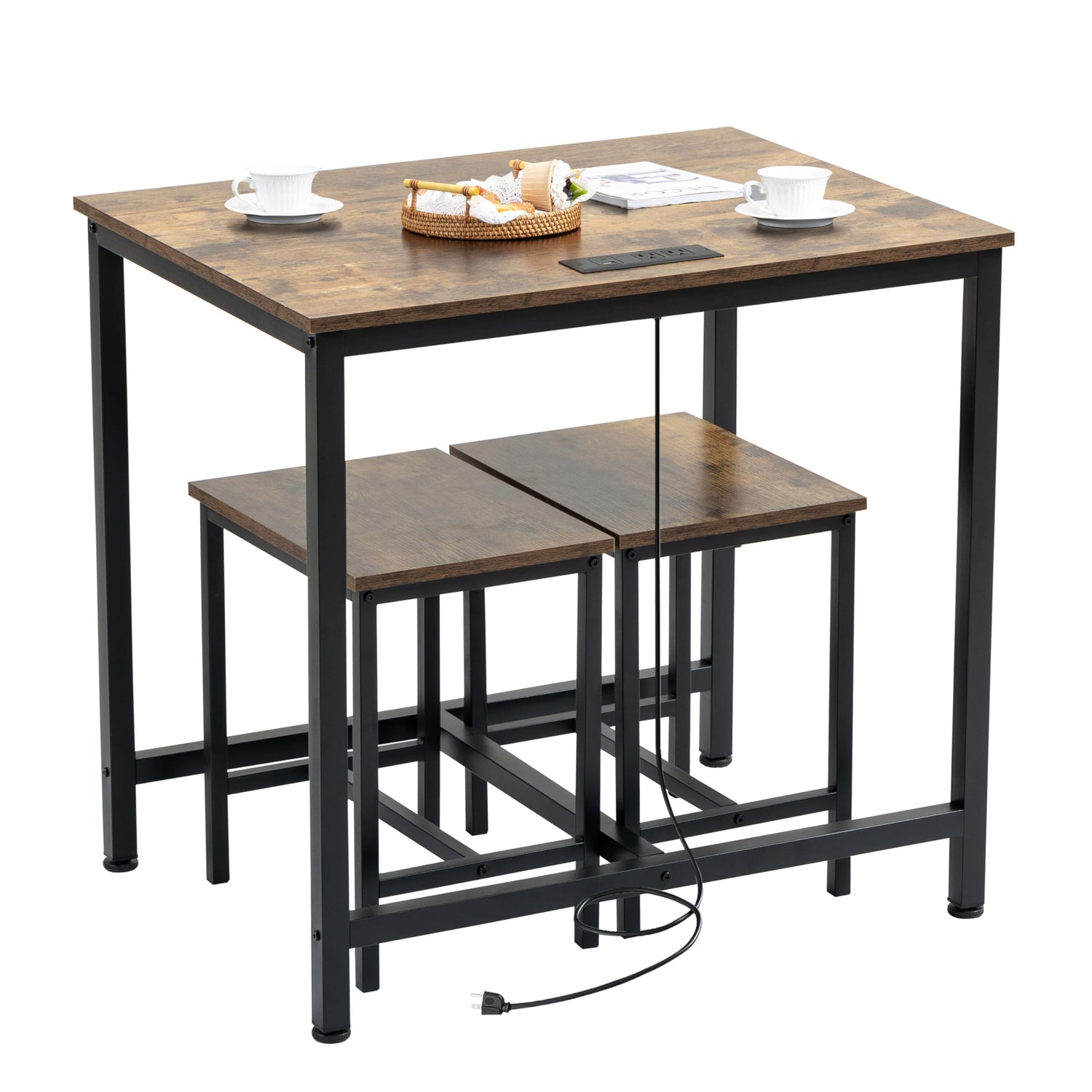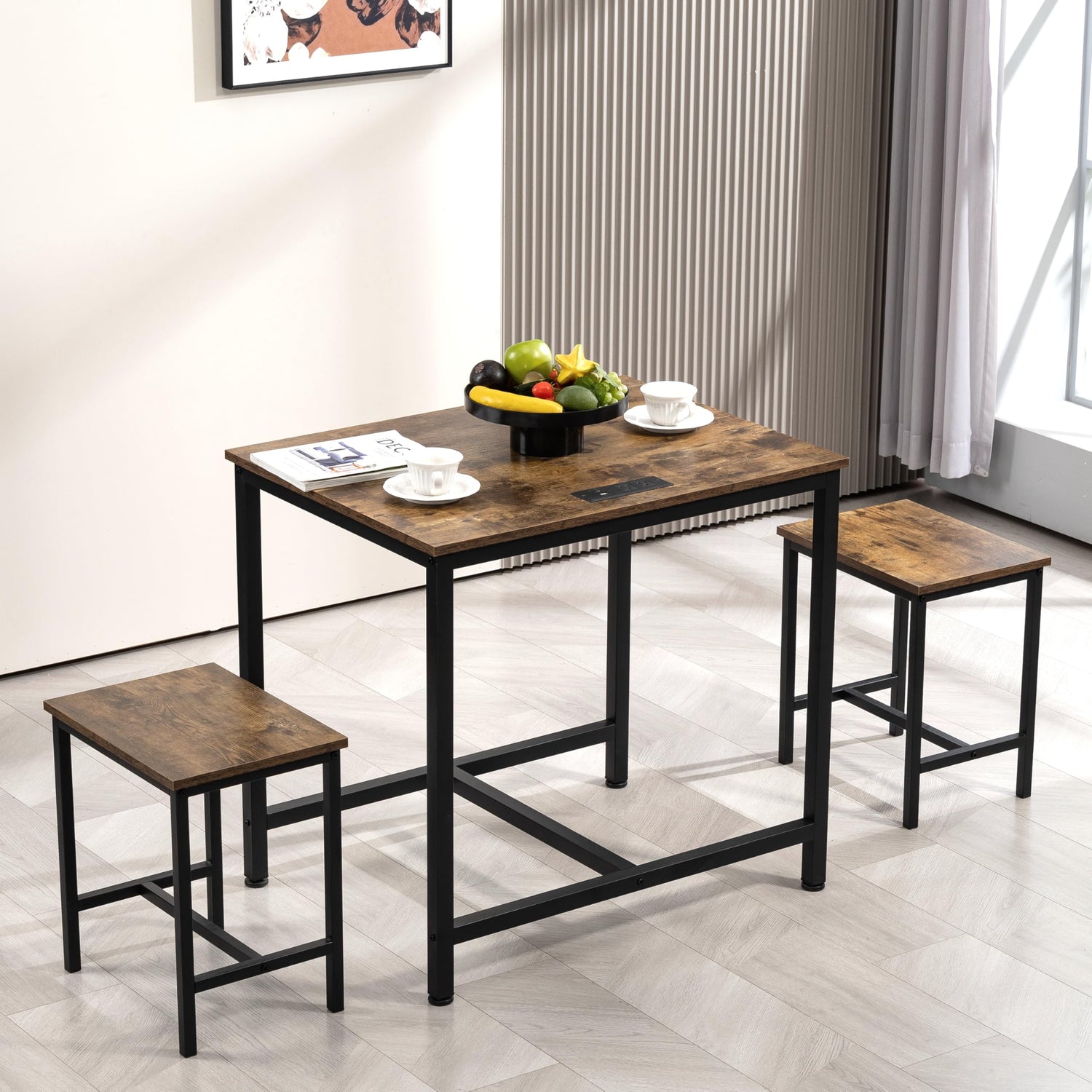 - 【Power Outlets Included】 – Equipped with 2 standard plug outlets, 1 USB port, and 1 Type-C port, this dining table makes it easy to charge phones, kitchen appliances, and other devices, keeping your space neat and free of tangled wires.