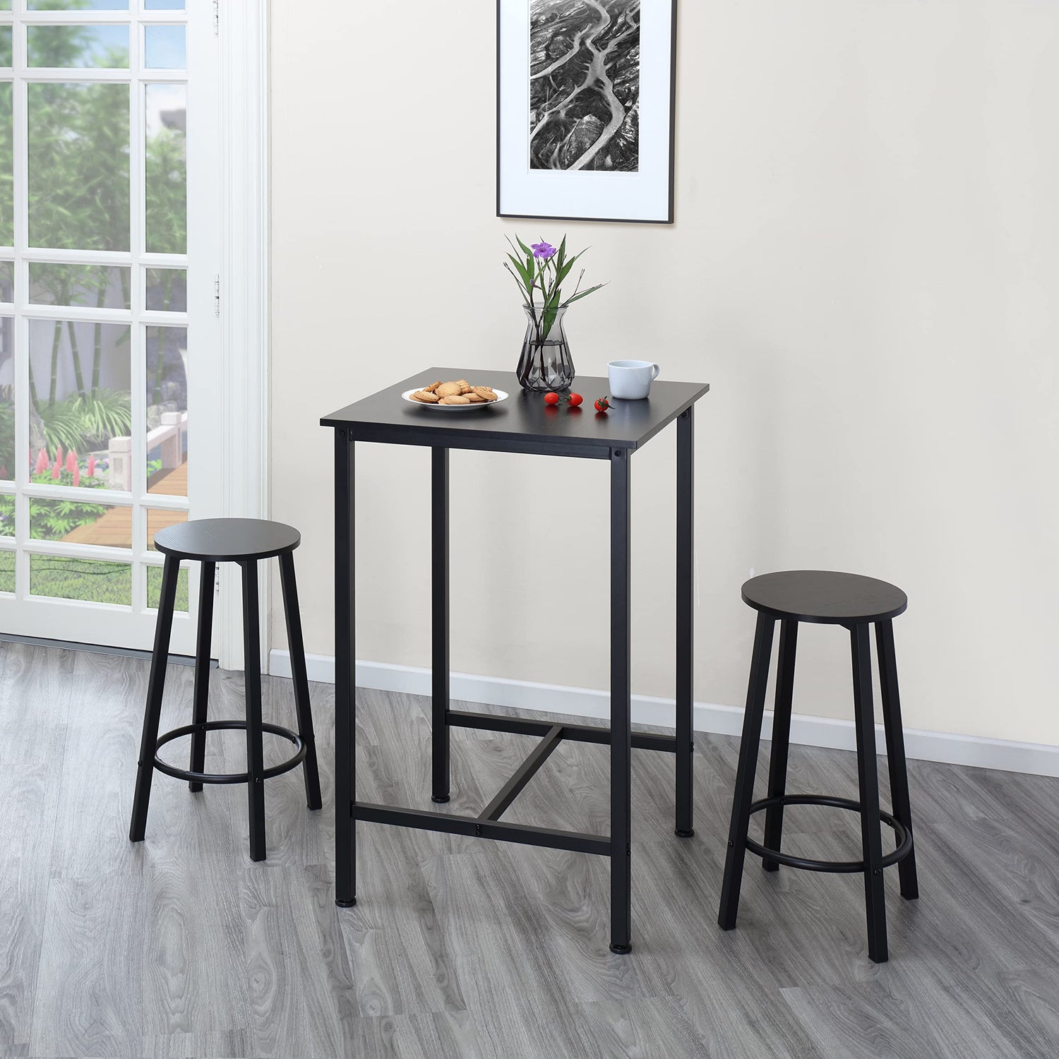 Finnhomy Bar Table Set, 23.6" Pub Table High Top Table, Square Bar Height Table, Bar Table with Stools, Kitchen Table Set for 2, Industrial Breakfast for Kitchen, Living Room, Rustic Black