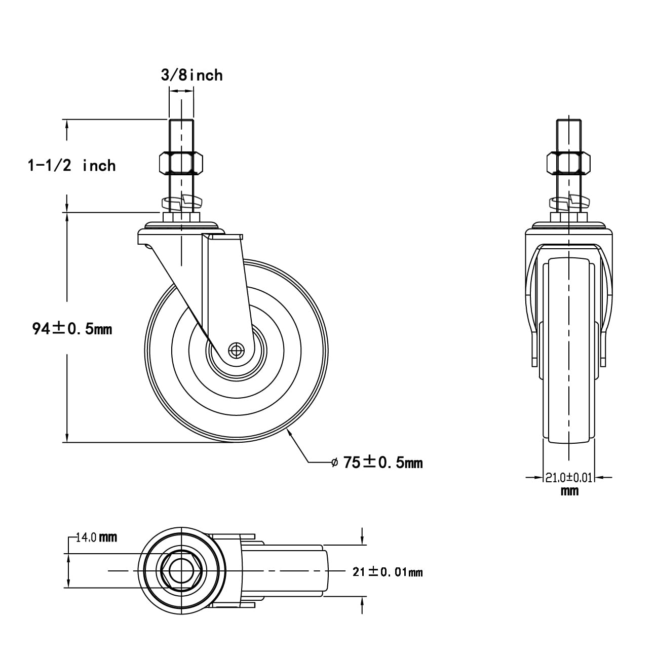 - PACKAGE: Included 4 casters(Stem Diameter 3/8", Stem Length 1-1/2")