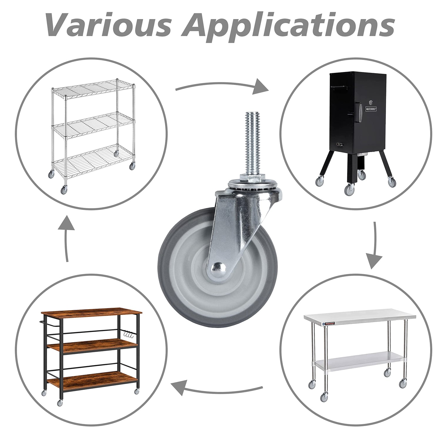 - UNIVERSAL:Perfect casters replacement for your wire rack shelving units. Also It can make your workbench, freezer, grill, fire pit, cooler, washer, dryer,grinder/ drill press stand,any other gadget you need move easily and roll smoothly, which save your labor and time.